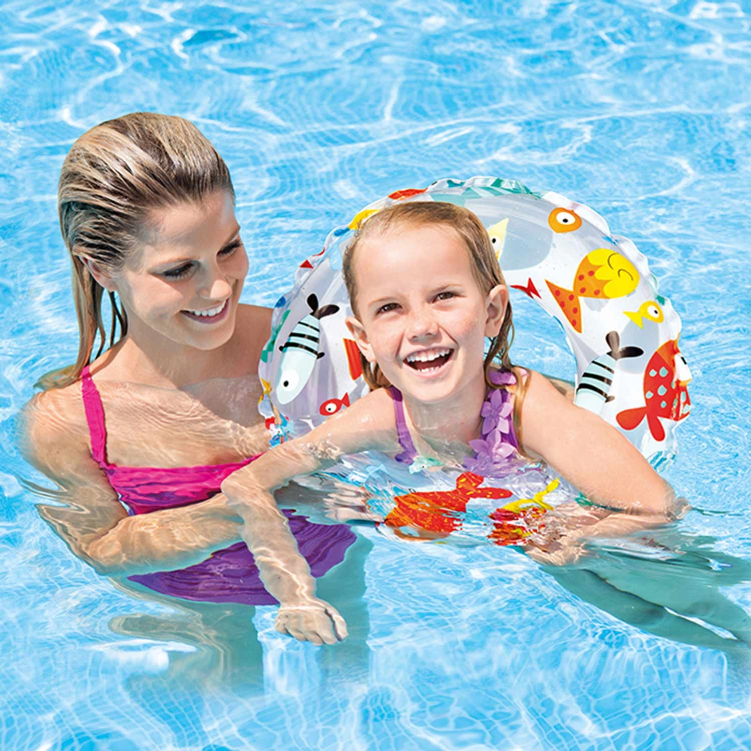 Atraktiivsed trükised kalade, puuviljade või kirjadega lisavad ujumisele lõbu ja parandavad rõnga nähtavust vees.