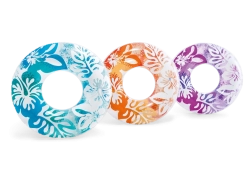 Kvaliteetne INTEXi 91 cm läbimõõduga täispuhutav ujumisrõngas on ideaalne valik veemängudeks ja lõõgastumiseks basseini ääres. Tänu vibrantsele troopilisele disainile ja töökindlale konstruktsioonile pakub see turvalist hõljumist ja suurepärast nähtavust vees.