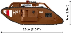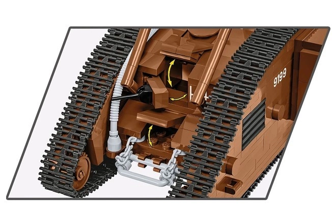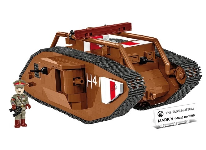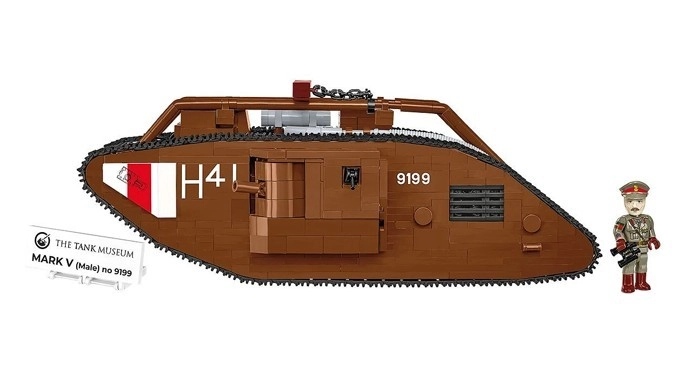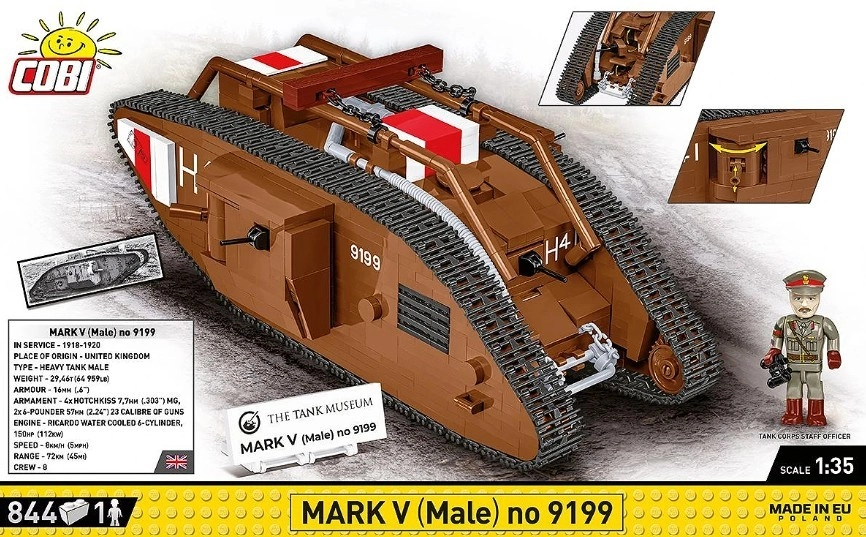 See hoolikalt teostatud legendaarse Briti tanki MARK V (Male) mudel põhineb autentsel muuseumieksponaadil nr 9199 The Tank Museumis Bovingtonis. Tänu mõõtkavale 1:35 sobitub see suurepäraselt COBI figuuride ja teiste mudelitega. Püsitrükised ilma kleepsudeta, toimiv roomikajam ja detailne teostus teevad sellest atraktiivse kollektsiooni eksemplari.