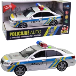 Realistlik Slovakkia kujundusega politseiauto koos slovakiakeelsete häälteateid edastava meeskonna ja dispetšeriga ning töötava vilkuriga. Pakub heliefekte, autentseid sekkumisteateid ja kompaktset suurust, mis sobib ideaalselt mängimiseks nii toas kui õues.