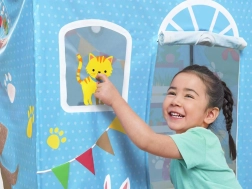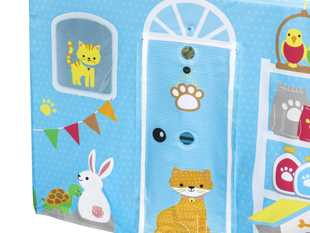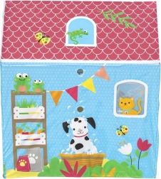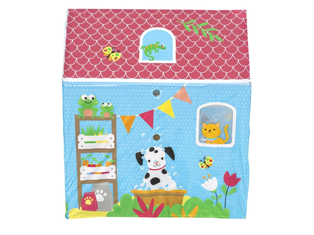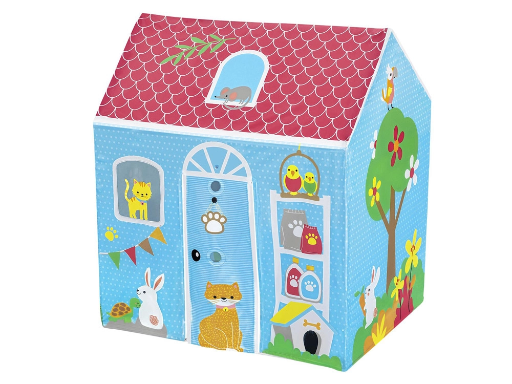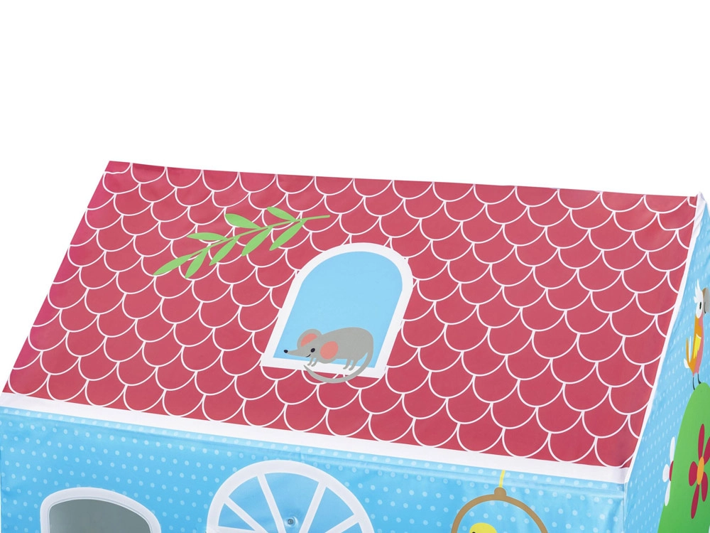 PVC-konstruktsioon on kerge, kuid tugev ja veekindel, mistõttu sobib maja nii tuppa kui aeda. Kokkupanek on intuitiivne ja tehtav mõne minutiga.