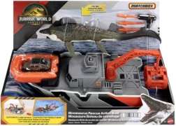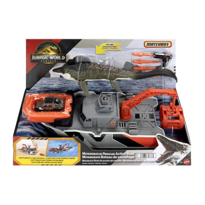 Alusta seiklusmissiooni selle Matchboxi päästepaadiga kollektsioonist Jurassic World. 32 cm pikkune laev liigub nii vee peal kui ka maal, sellel on toimiv vints kaasasoleva mosasauruse (33 cm) transportimiseks, harpuunide laskeseade DNA jahtimiseks ning eraldatav päästeparv koos metallist Jeepiga 1:64. Suurepärane mänguasi dinosauruste ja põnevusmissioonide fännidele.