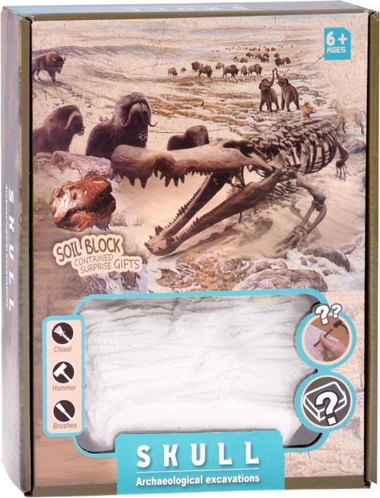Igas plokis on üllatus – see võib olla mammuti, mõõkhambulise tiigri, kotka, krokodilli või mõne teise põneva olendi kolju. Lapsed proovivad haamri, peitlite ja pintsli abil noore arheoloogi tööd ning avastavad peidetud leiu samm-sammult.