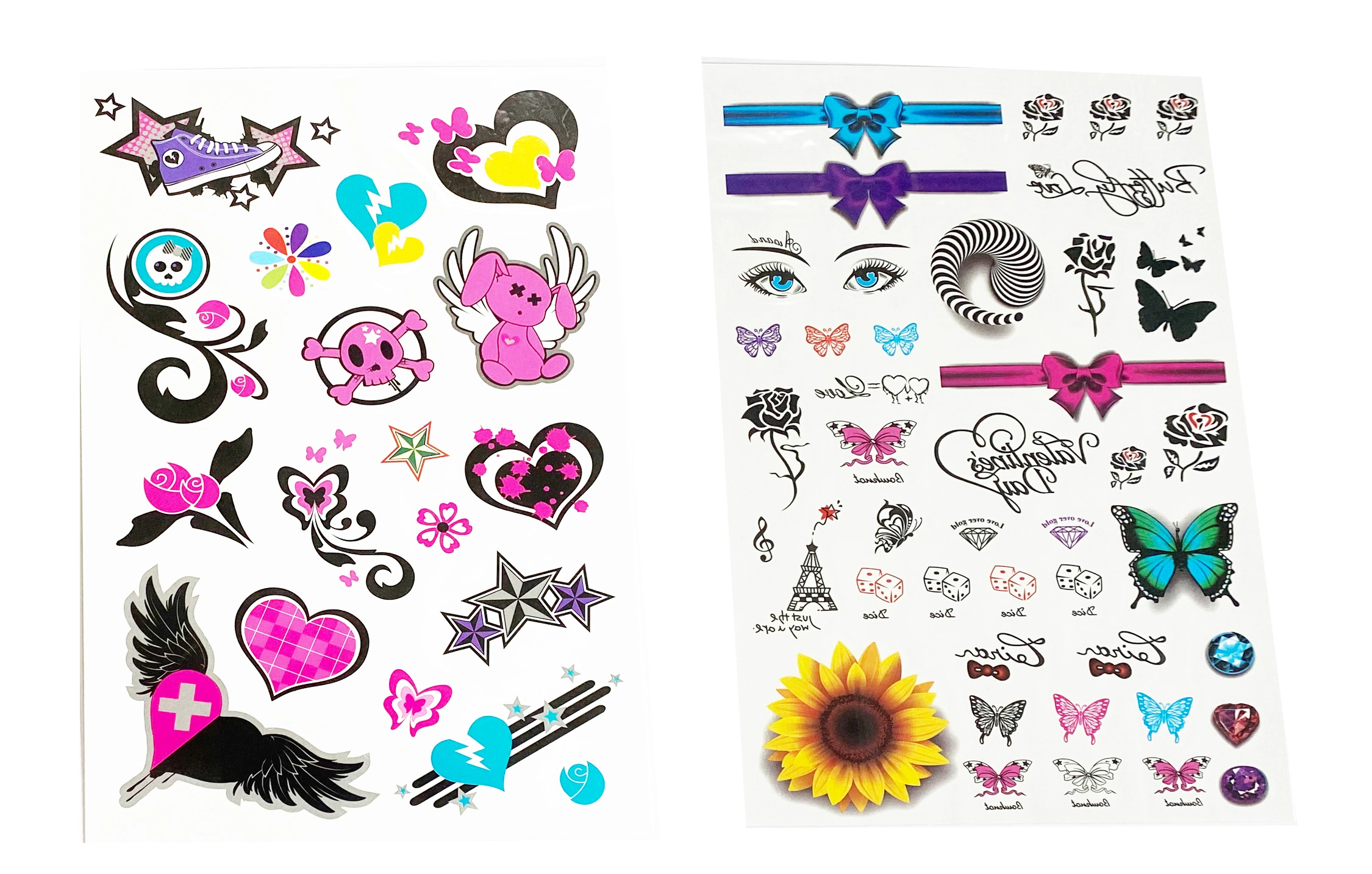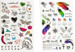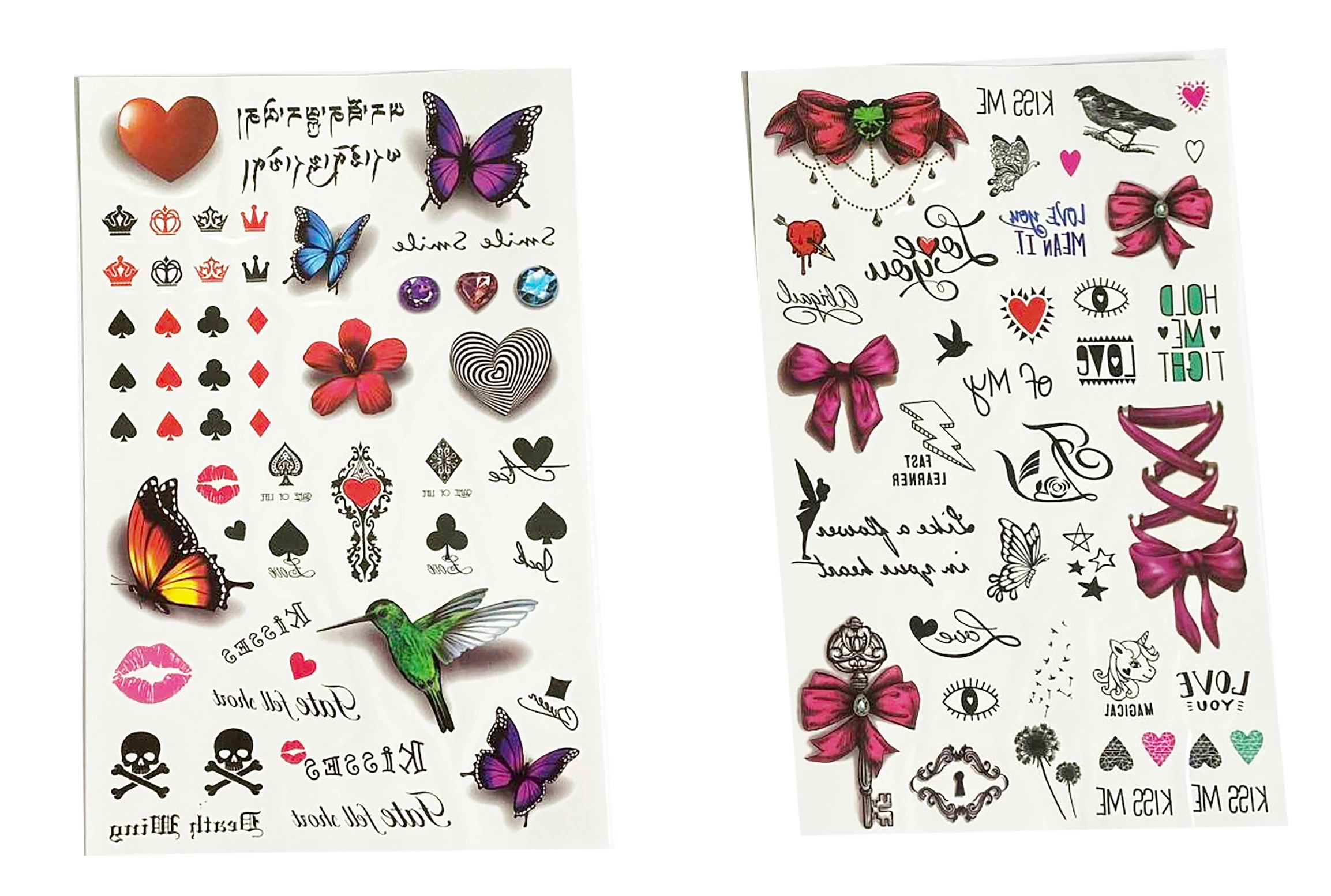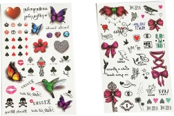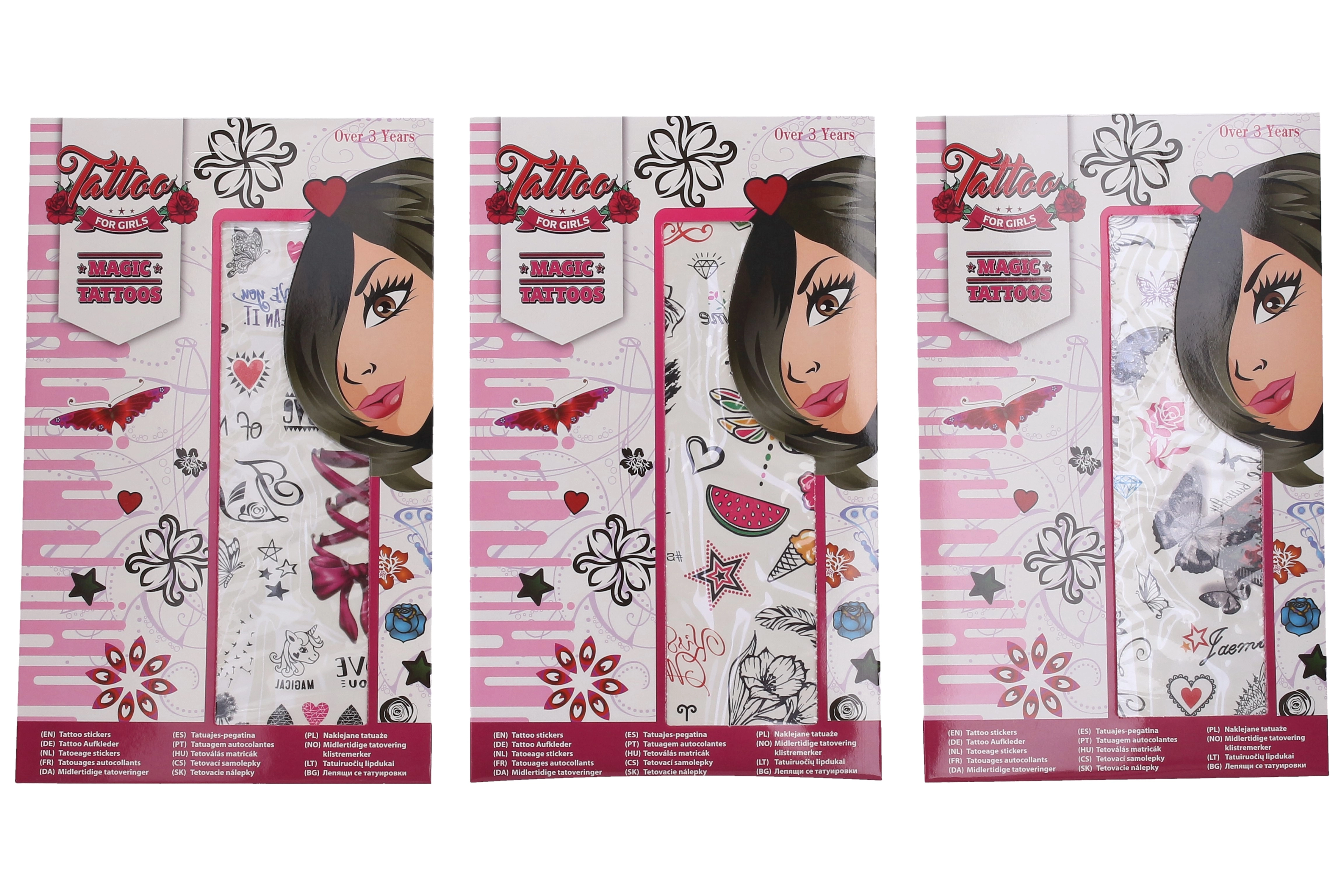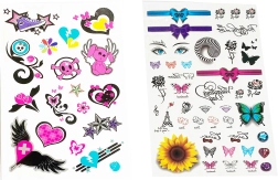 Avasta tüdrukutele mõeldud ajutiste tätoveeringute kirev maailm. Igal lehel leiad kümneid armsaid motiive eri suurustes – alates liblikatest ja lilledest kuni südamekeste, lipsukeste ja tähekesteni. Tänu lihtsale protsessile saavad neid kanda ka lapsed täiskasvanu järelvalvel. Tätoveeringud sobivad suurepäraselt pidudeks, karnevalideks, peopakikottide kingitusteks või loovaks nädalalõpu kaunistuseks.