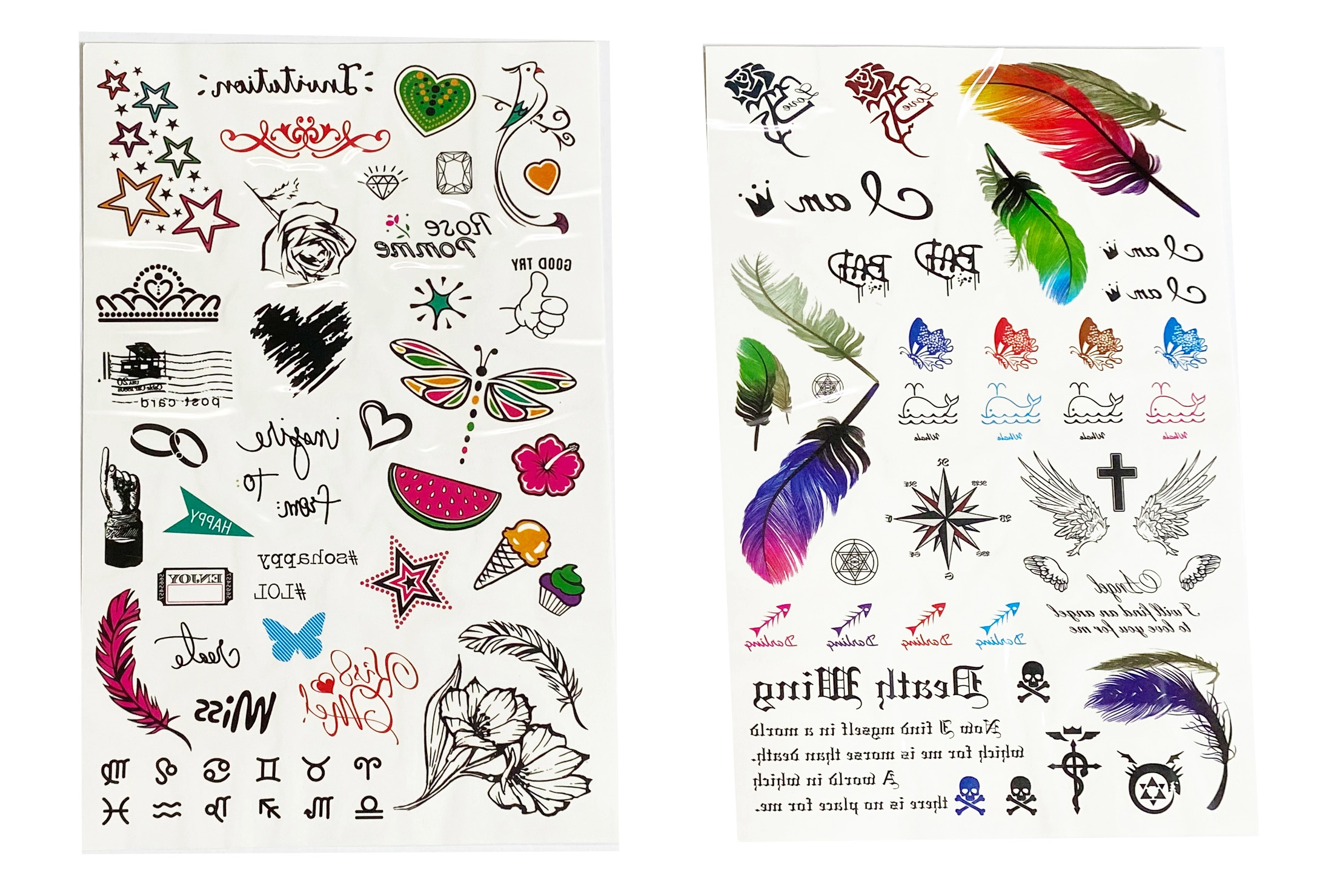 Lihtne pealekandmine: eemalda kaitsekile, aseta motiiv puhtale ja kuivale nahale, niisuta ning suru õrnalt käsnaga, seejärel eemalda paber. Tulemuseks on silmapaistev, värviline ja samas ajutine motiiv – selle saab mõne päeva pärast hõlpsalt eemaldada õliga või sooja seebiveega.