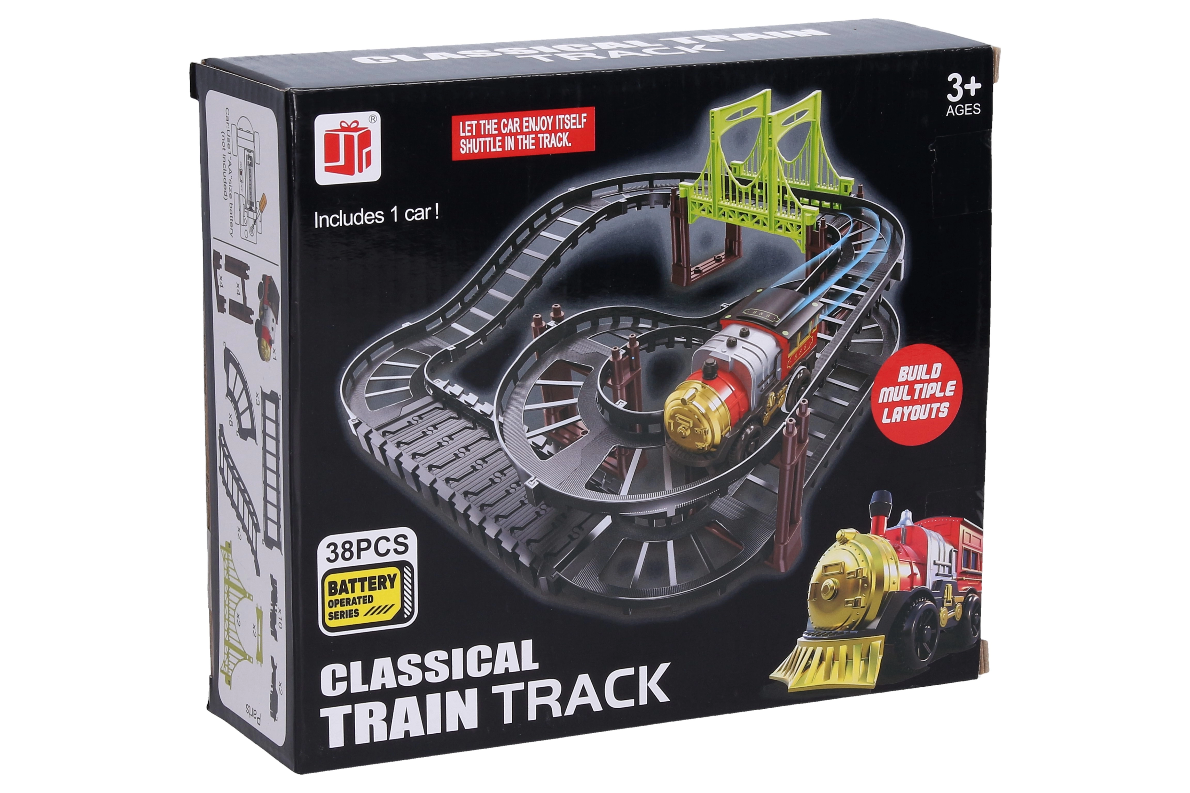 Lõbus lasterongirada pakub lihtsat juhtimist ja kiiret kokkupanekut. Patareiga vedur käivitub ON/OFF lülitiga, komplektis on 38 osa ning rõõmustab kompaktsete mõõtudega 31 × 32 × 14 cm. Ideaalne kingitus väikestele rongisõpradele.