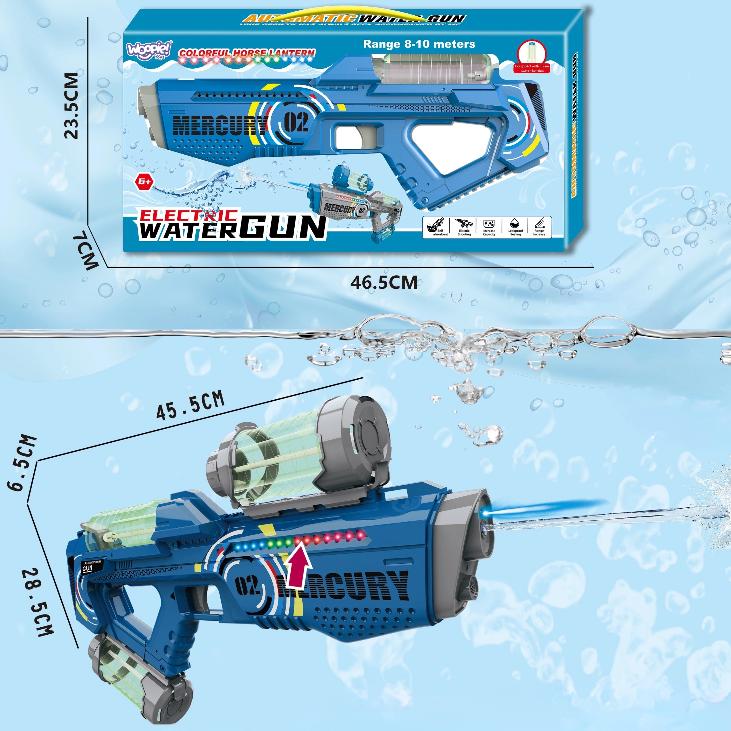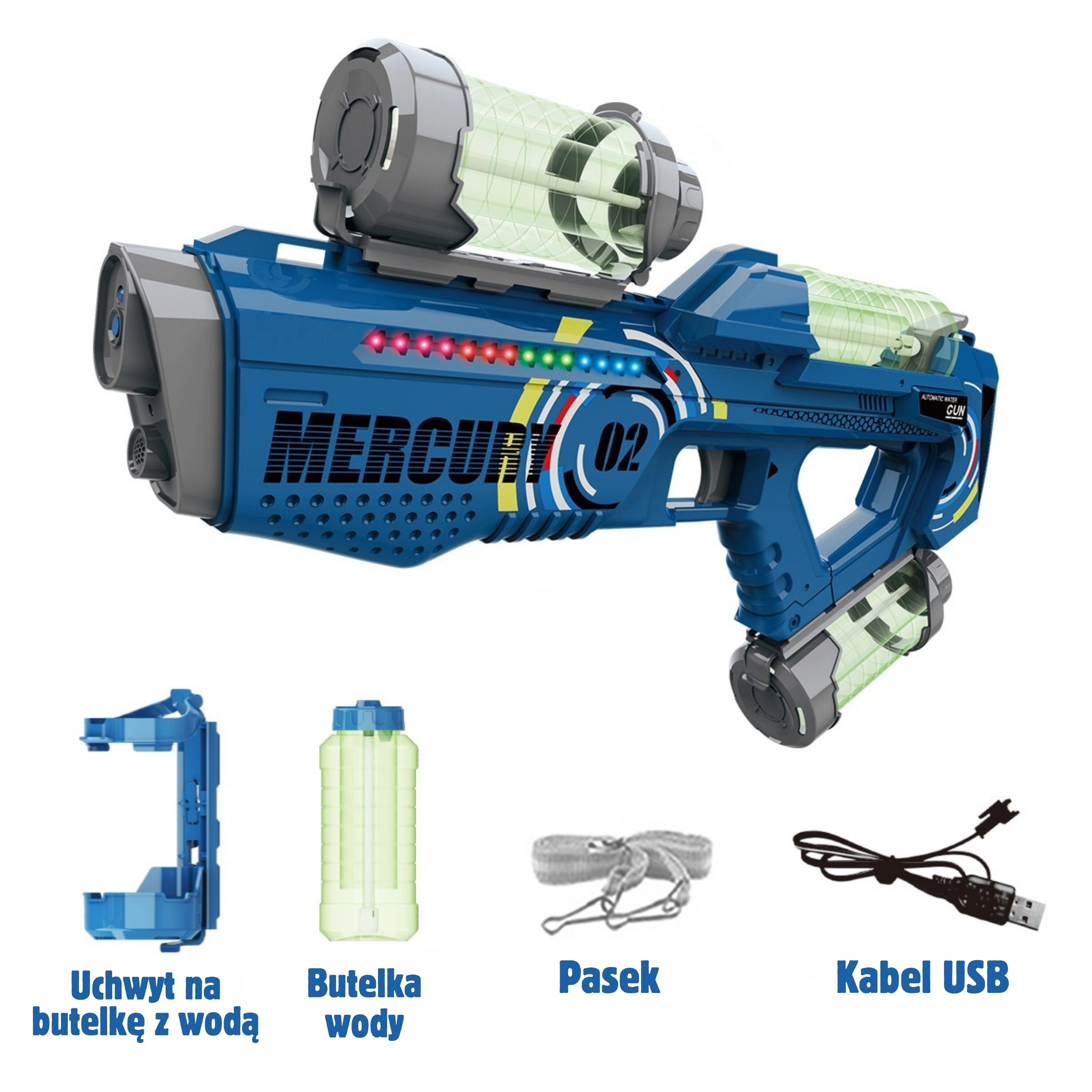 Nauti suve täiega elektrilise veepüstoliga WOOPIE MERCURY 02! See pakub automaatset pritsimist ilma pumpamata, võimsat 2200 mAh akut, 3 vahetatavat veemagasiini ja USB-laadimist. Suurepärane valik lastele alates 6. eluaastast ja täiskasvanutele – aeda, randa ja veelahinguteks.