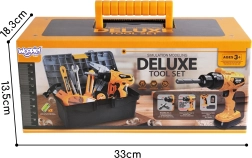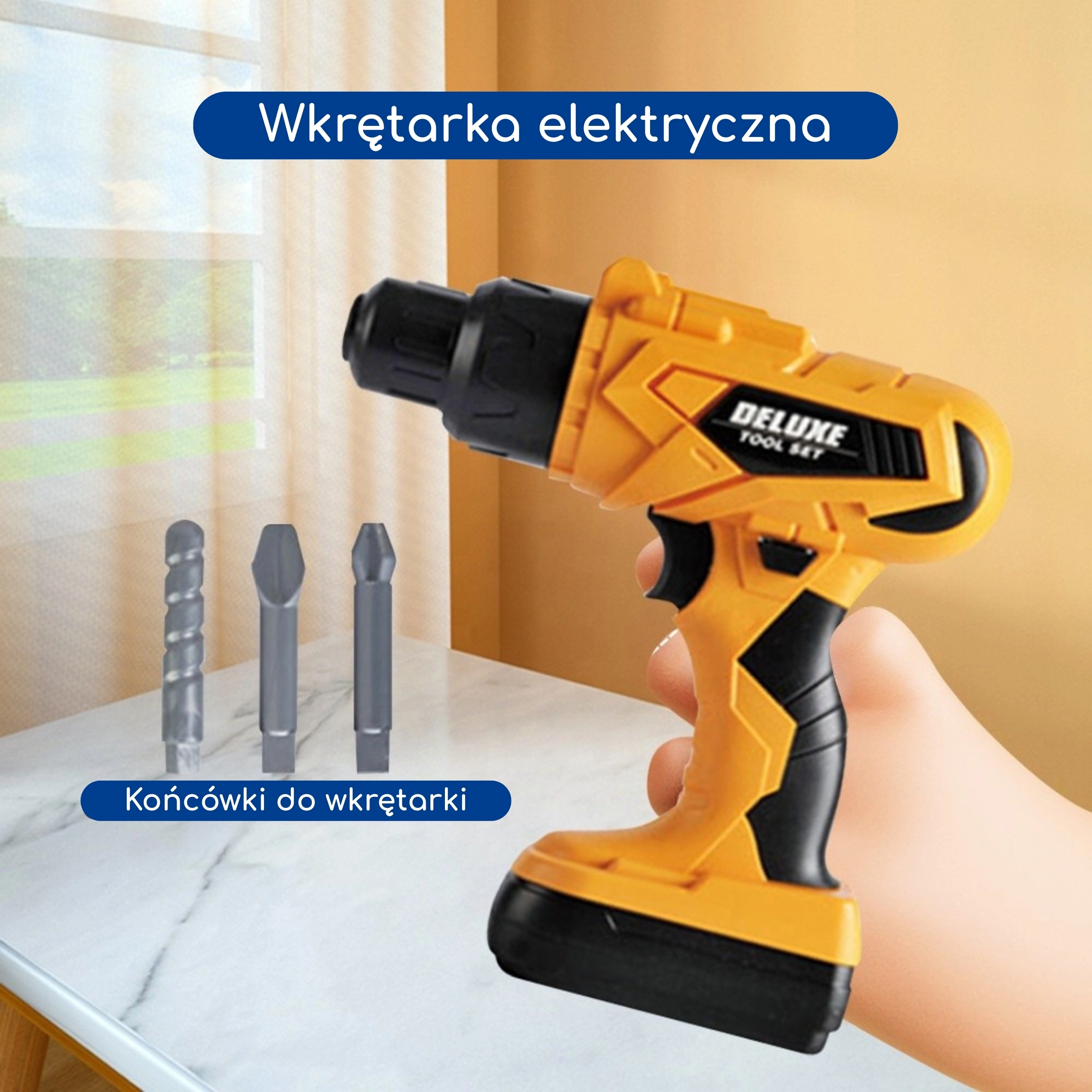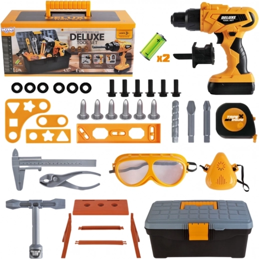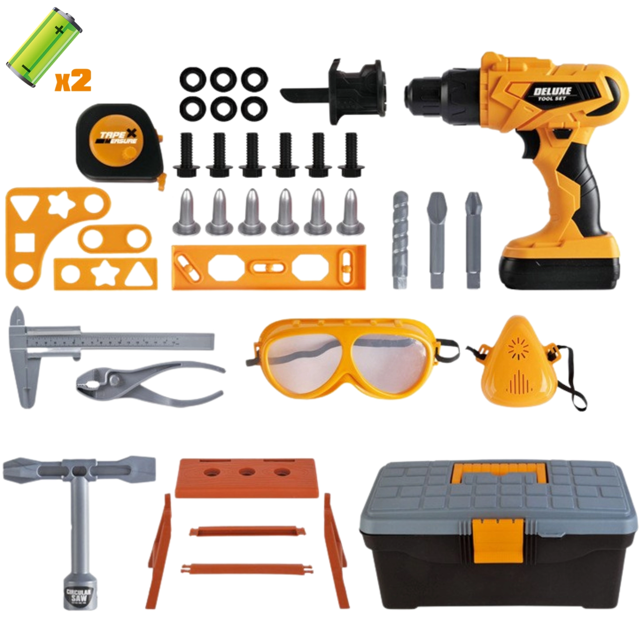 Kõik on paigutatud vastupidavasse tööriistakohvrisse/kappi, mis lihtsustab kandmist ja korrastamist. Komplekti kuuluvad ka kaitseprillid, kruvid, mutrid, bitid, puur, ühendusplaadid, mini-töölaua element ning teised tööriistad (võti, mõõdulint, tangid). Mänguasi on mõeldud lastele alates 3. eluaastast ning arendab manuaalseid oskusi, loovust, fantaasiat ja nägemis-liigutuskoordinatsiooni.