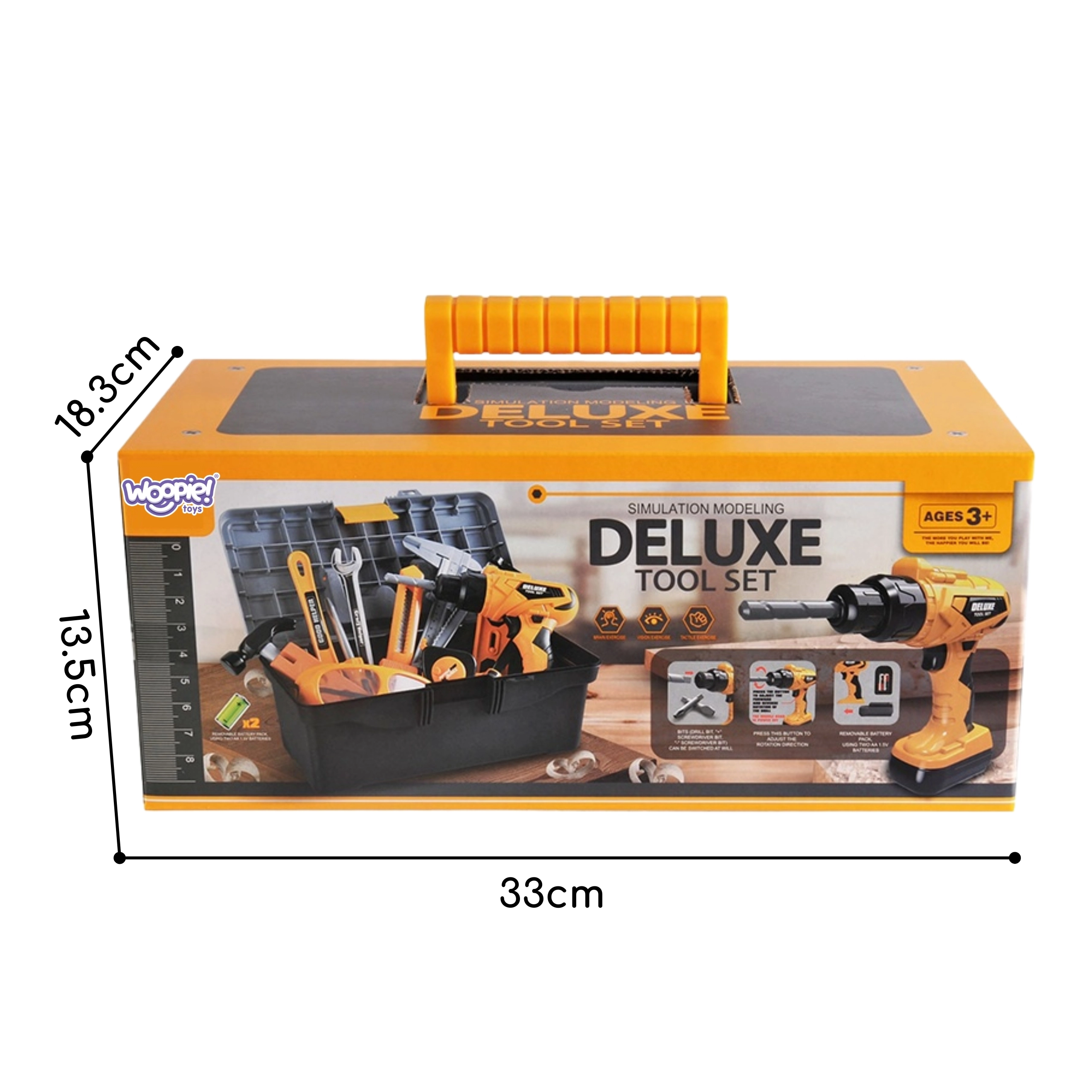 Väikese meistrimehe tööriistakomplekt Woopie muudab iga toa mini-töökojaks. Lapsed saavad matkida täiskasvanuid: kruvida, puurida ja kokku panna, kasutades rikkalikku tarvikute komplekti. Elektriline akudrell pöörlemissuuna vahetuse ja vahetatavate otsikutega (sh otsik tüüpi „saeleht/tiigelsaag“ ja bitipidaja) lisab mängule autentsust.