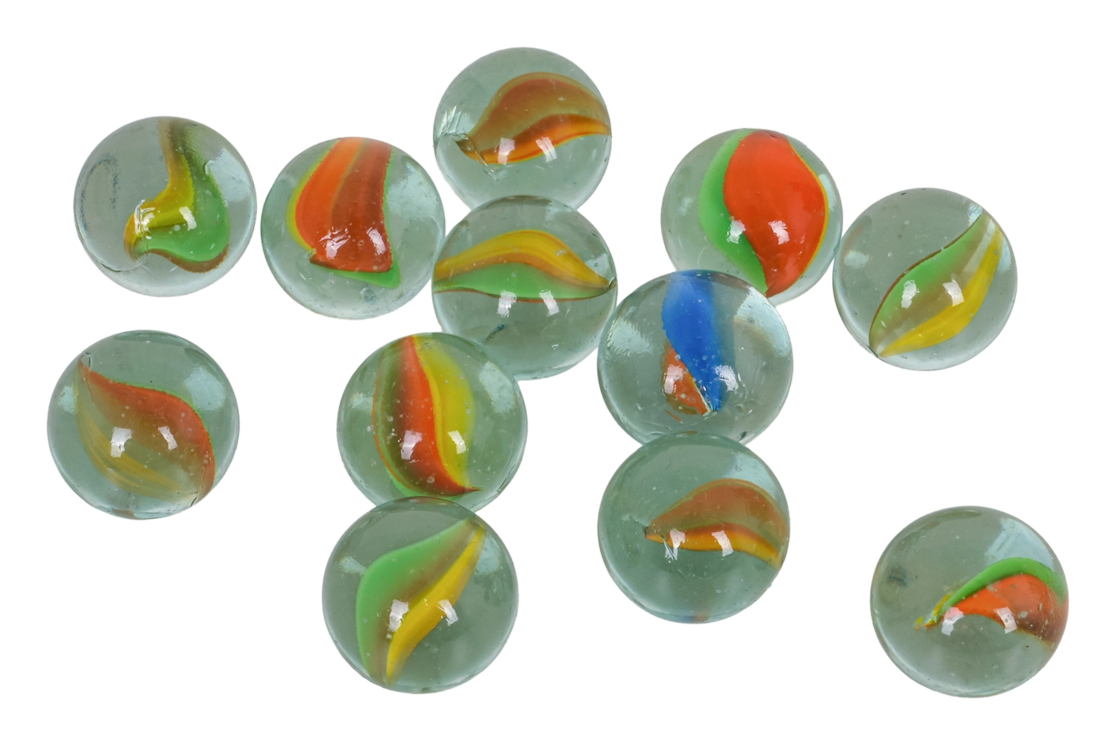 Komplektis on 12 värvimustriga klaaskuuli – ideaalne võidusõitudeks, ajaväljakutseteks ja gravitatsioonikatseteks.