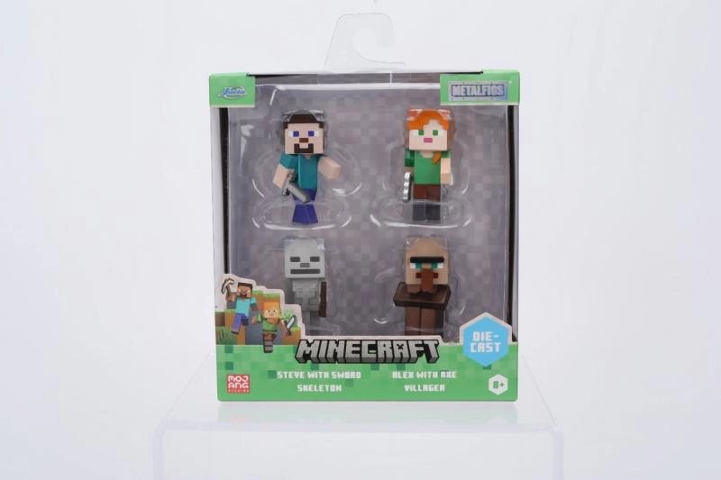 Pakendis leiate neli populaarset tegelast: Steve mõõgaga, Alex kirvega, Luukere (Skeleton) ja Külaline (Villager). Tänu kompaktselt 6 cm kõrgusele sobivad figuurid suurepäraselt töölauale, riiulile või vitriini.