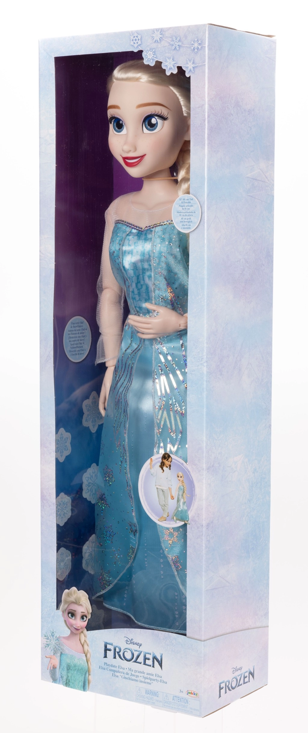 Avasta Lumekuninganna maagia 86 cm kõrguse ülisuuruses Elsa nukuga, mis lummab detailse lumehelbekujundusega kleidi, pika blondi patsi ja õrnade näojoontega. Tänu täielikult liigendatud konstruktsioonile liigub ta suurepäraselt, istub mugavalt, poseerib kergesti ja saadab lapsi igal seiklusel.