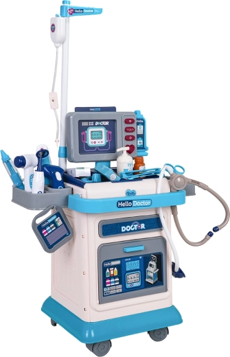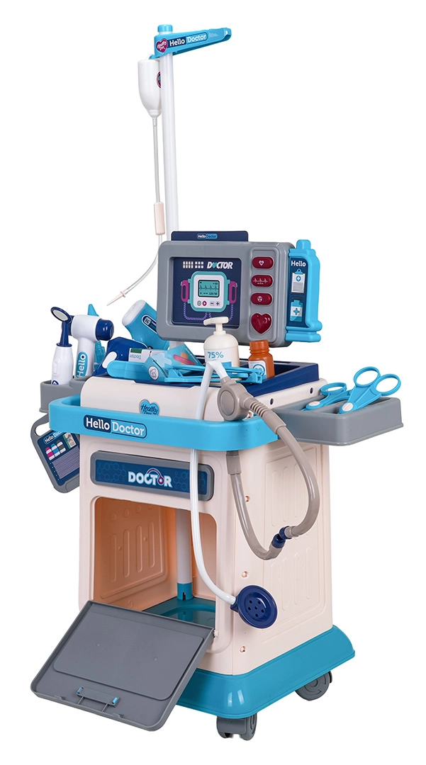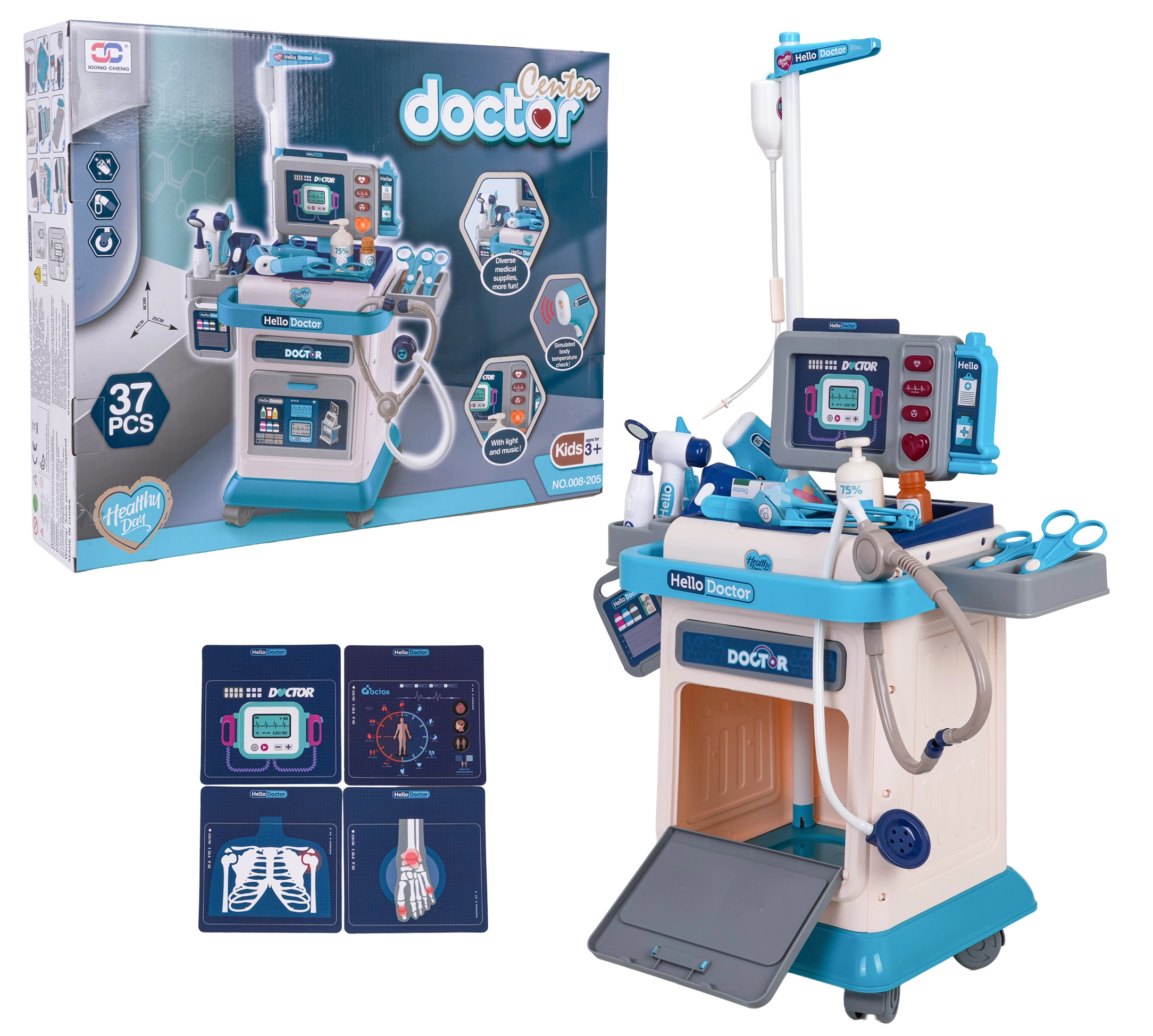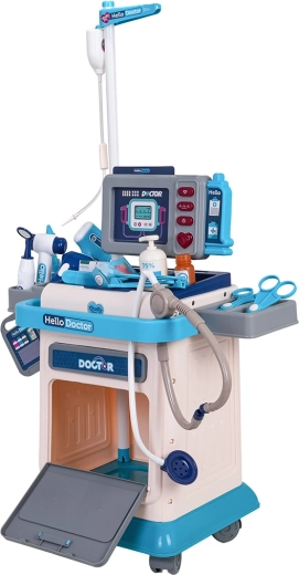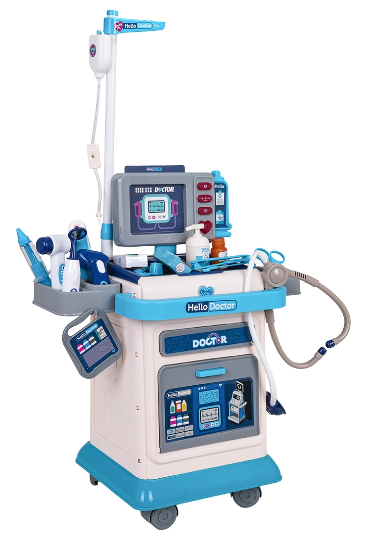 See rikkalikult varustatud laste arstimängu komplekt pakub lõbusat ja harivat arstimängu. Stabiilne ratastel käru reguleeritava käepidemega lihtsustab “kliiniku” liigutamist, samal ajal kui monitoripaneel pakub valgus- ja heliefekte – südamelöögid, temperatuuri mõõtmine, tomograafi heli ja alarm. Komplektis on vahetatavad slaidid EKG ja tomograafi jaoks, mis toetavad realistlikku mängu.