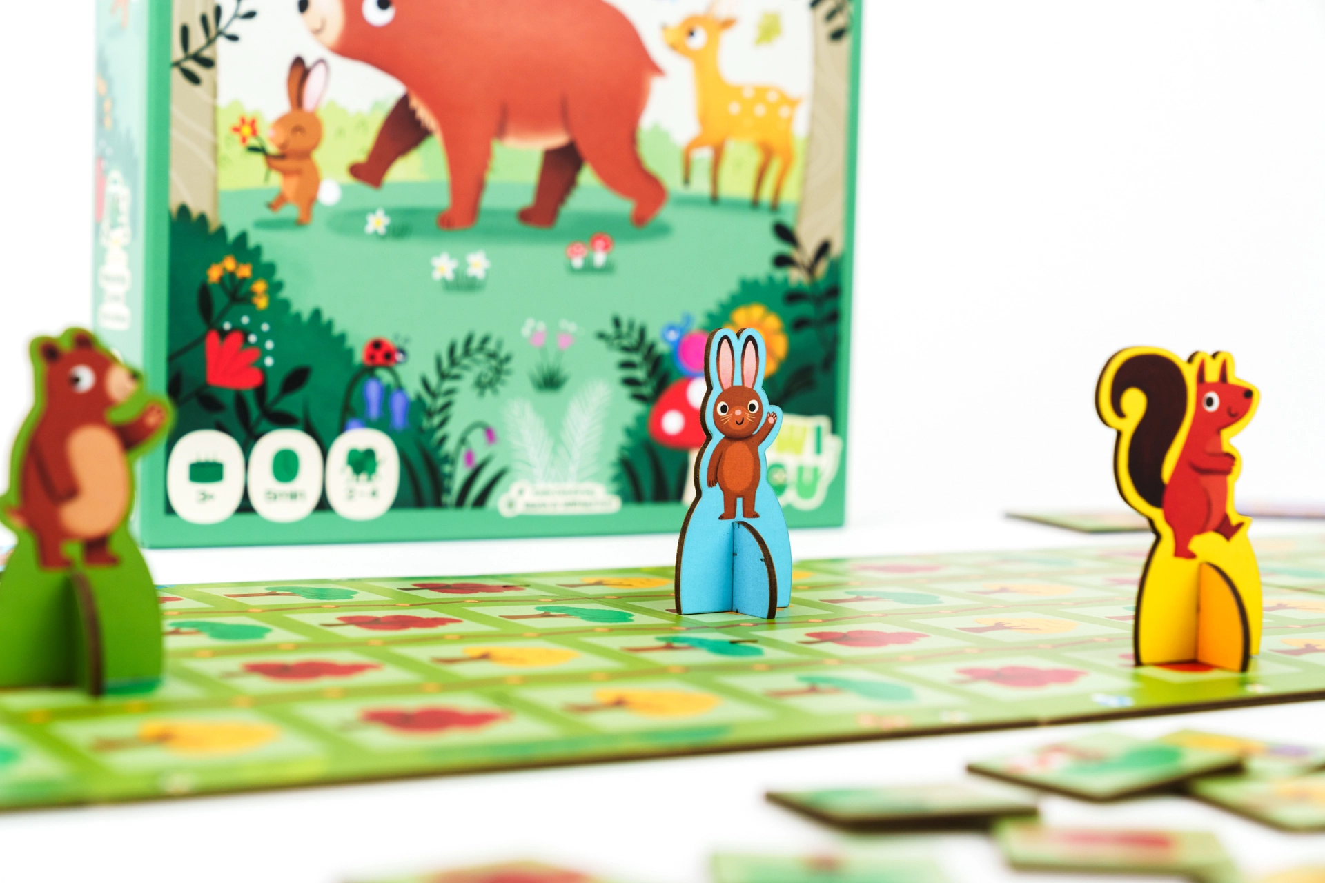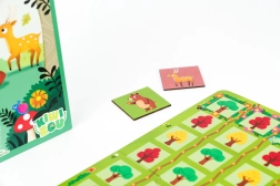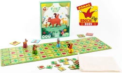 Komplektis: suur metsateemaline mängulaud (4 osa), 4 kartongist totemloomakest, 4 tegelaskaarti, 30 žetooni, 12 toidu žetooni, puuvillane loosikott.