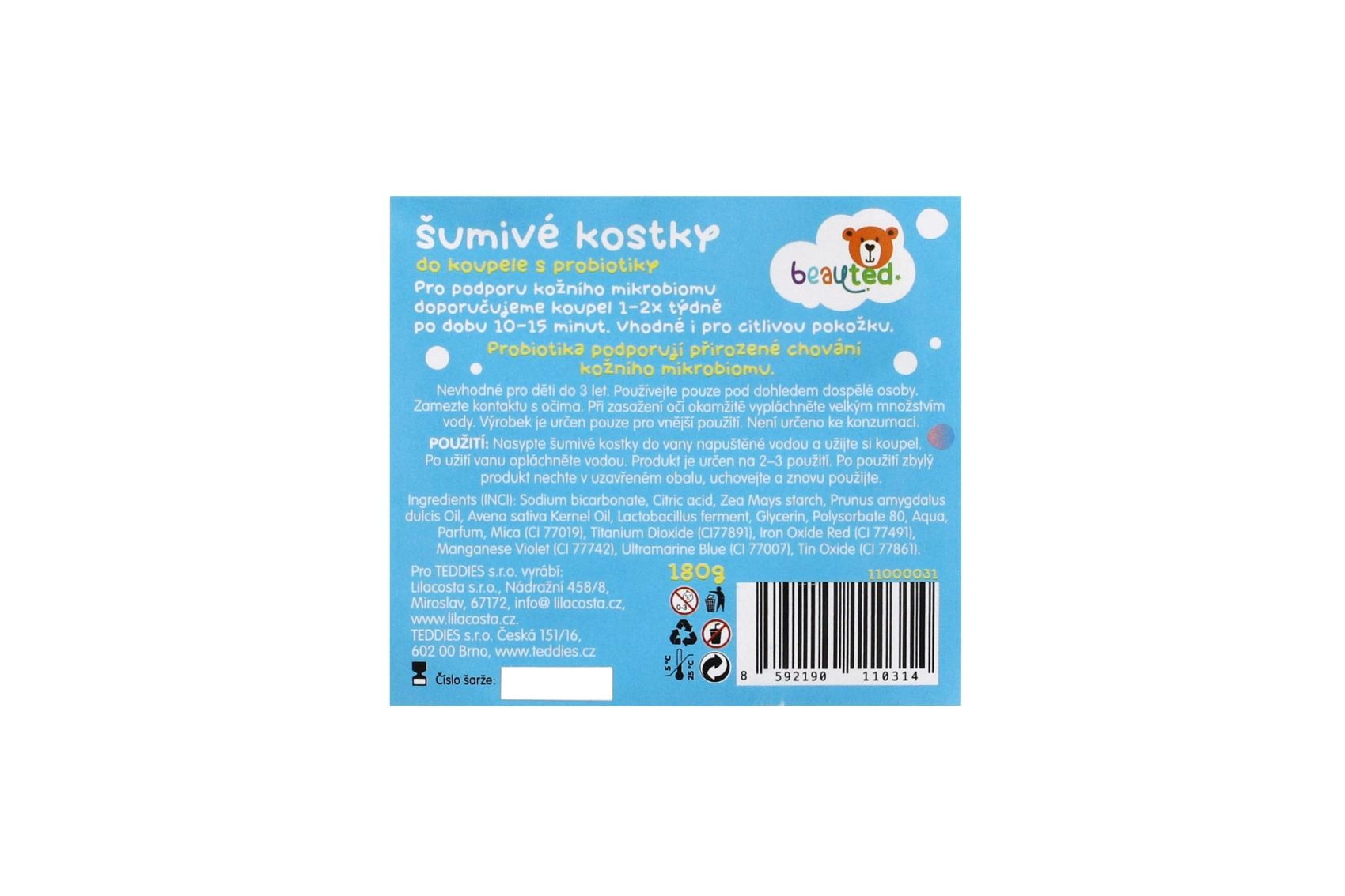 Muuda vanniskäik värvikaks seikluseks. Vahutavad vannikuubikud probiootikumidega pakuvad lõbu ja õrna hooldust lapse õrnale nahale. Need sisaldavad probiootikume, mis toetavad naha loomulikku kaitsevõimet, on rikastatud meresoola mineraalidega, kaeraekstrakti ja mandliõliga. Dermatoloogiliselt testitud, õrnad lastele. Praktiline suletav kott hoiab värskuse ja teeb doseerimise lihtsaks.