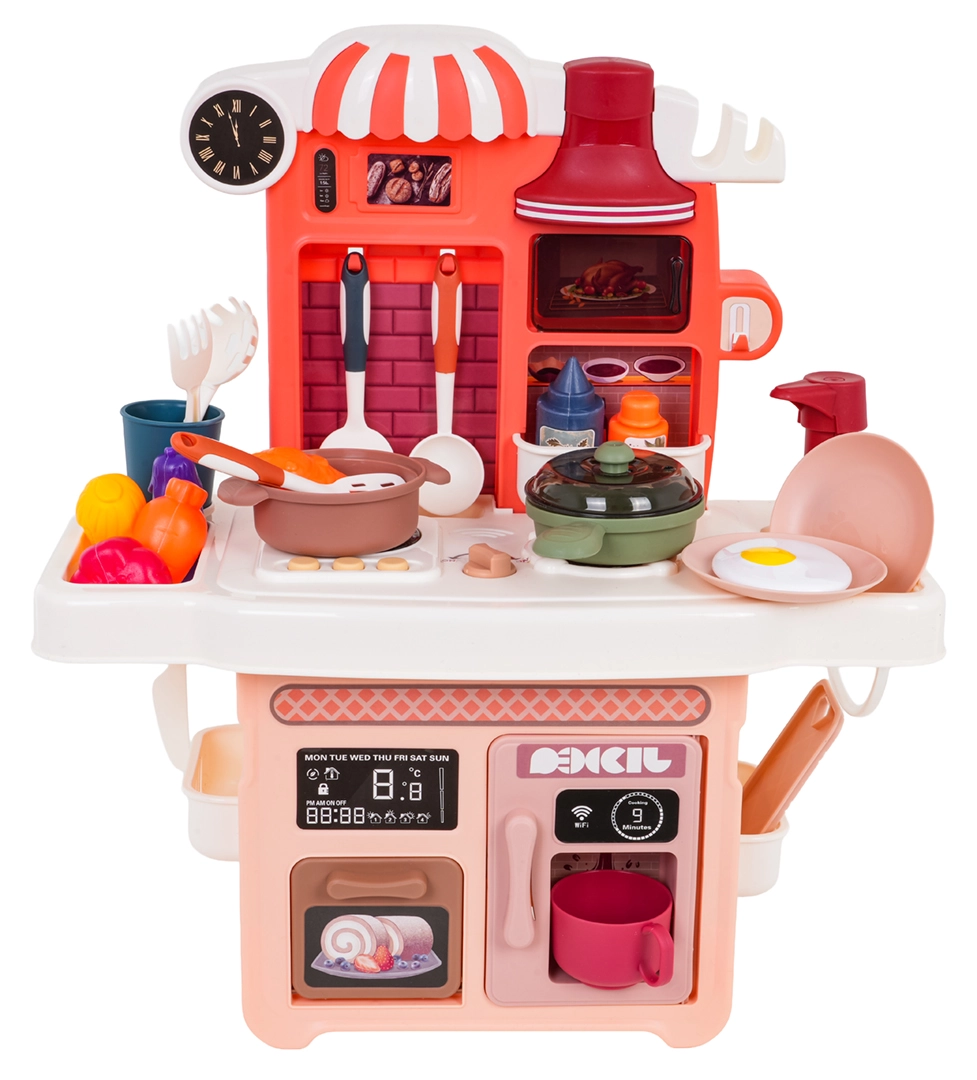 See kvaliteetselt valmistatud laste köök erksates värvides toetab fantaasiat, rollimängu ja peenmotoorikat. Nuppude keeramisel kostavad autentsed toiduvalmistamise helid ja põletid süttivad. Nuppude vajutamisel mängib köök laule, lasteluuletusi ja ohutusjuhiseid, mis õpetavad lapsi lõbusal viisil õigeid harjumusi järgima.