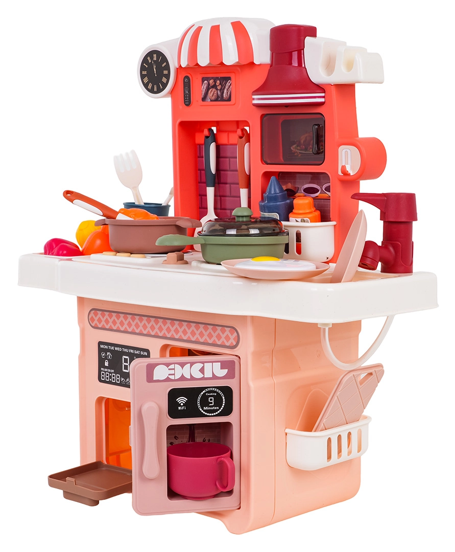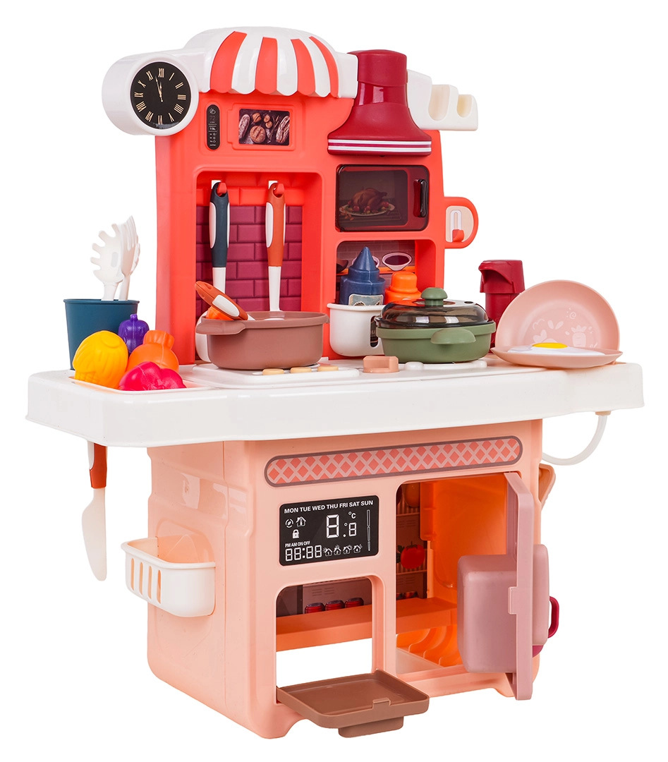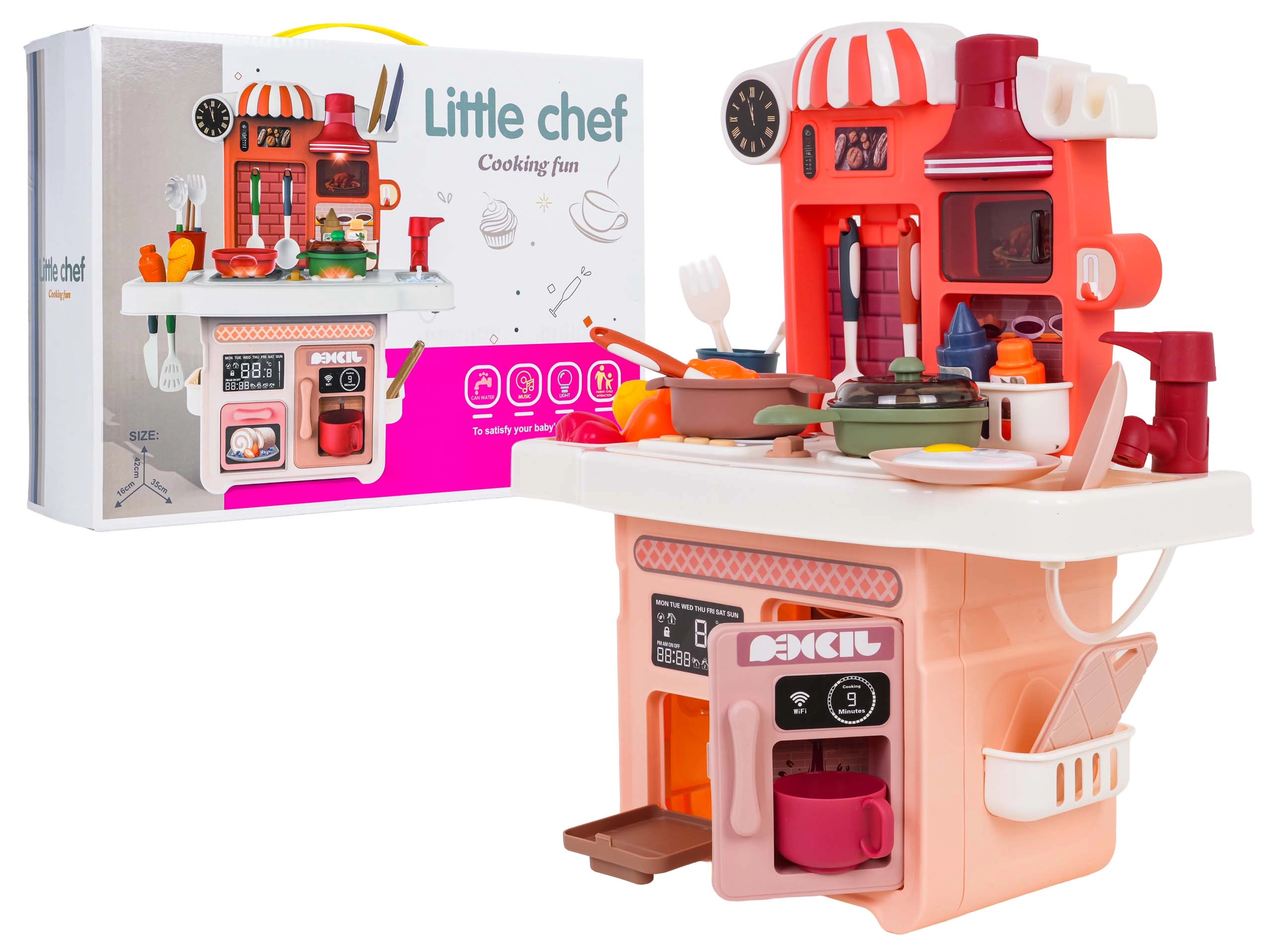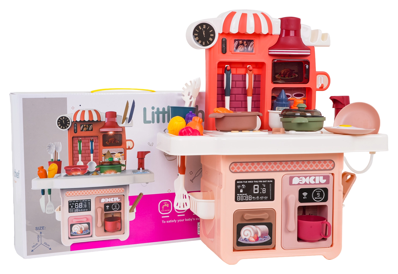 Avasta kokkamise rõõm selle roosa interaktiivse laste köögiga alates 3. eluaastast. See pakub valgusefekte, realistlikke keetmise ja praadimise helisid, toimivat veekraaniga kraani (pumpmehhanismiga) ning rikkalikku lisavarustust loovaks mänguks. Komplektis on taustvalgustusega põletid, avatav ahi, kohvimasina imitatsioon ja valgustusega õhupuhasti.