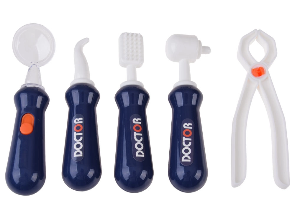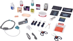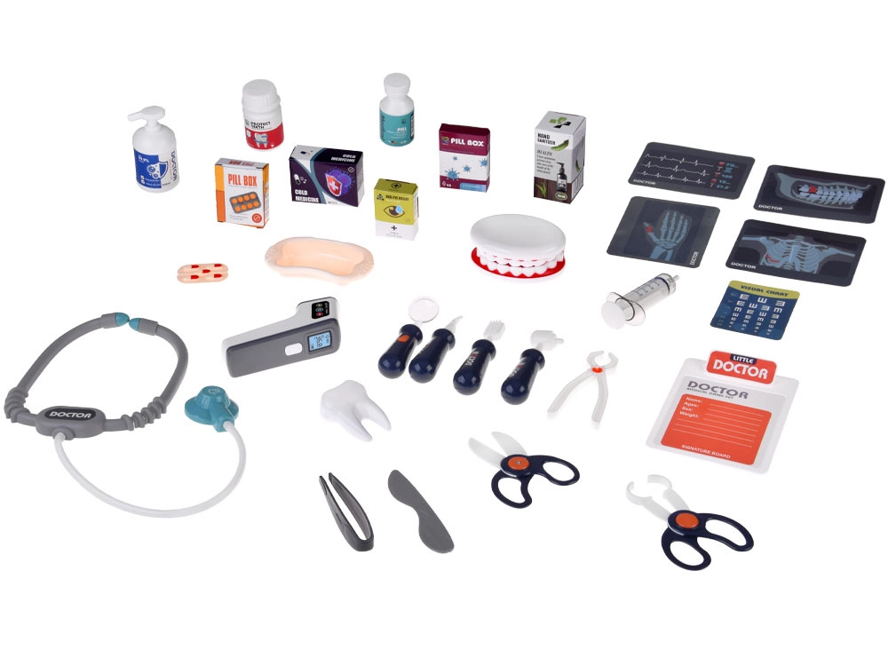 Komplektis on lai valik tarvikuid: stetoskoop, termomeeter, LED-iga hambaarsti peegel, pintsetid, käärid, hambahari, kapslid, “ravimikarbid”, avatav lõualuu mudel ja eraldiseisev “hammas”, EKG kaart ning röntgenikaardid. Tänu mobiilsele konstruktsioonile ja hoiuriiulitele sobib komplekt suurepäraselt ühismänguks ja korra hoidmiseks.