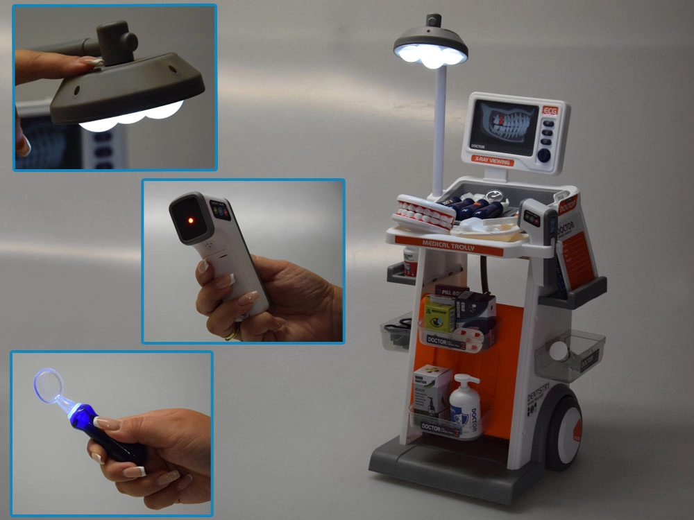 Muutke lastetuba väikeseks vastuvõtuks. Interaktiivne käru “X-Ray/ECG” monitori, lambi, sahtlite ja pöörlevate ratastega pakub autentset arsti- ja hambaarstimängu. Lapsed saavad kuulata südant, “röntgenida” patsienti, kontrollida hambaid lõualuu mudelil ning turvaliselt proovida igapäevaseid toiminguid. Realistlikud valgus- ja heliefektid võimendavad elamust ja innustavad avastama.