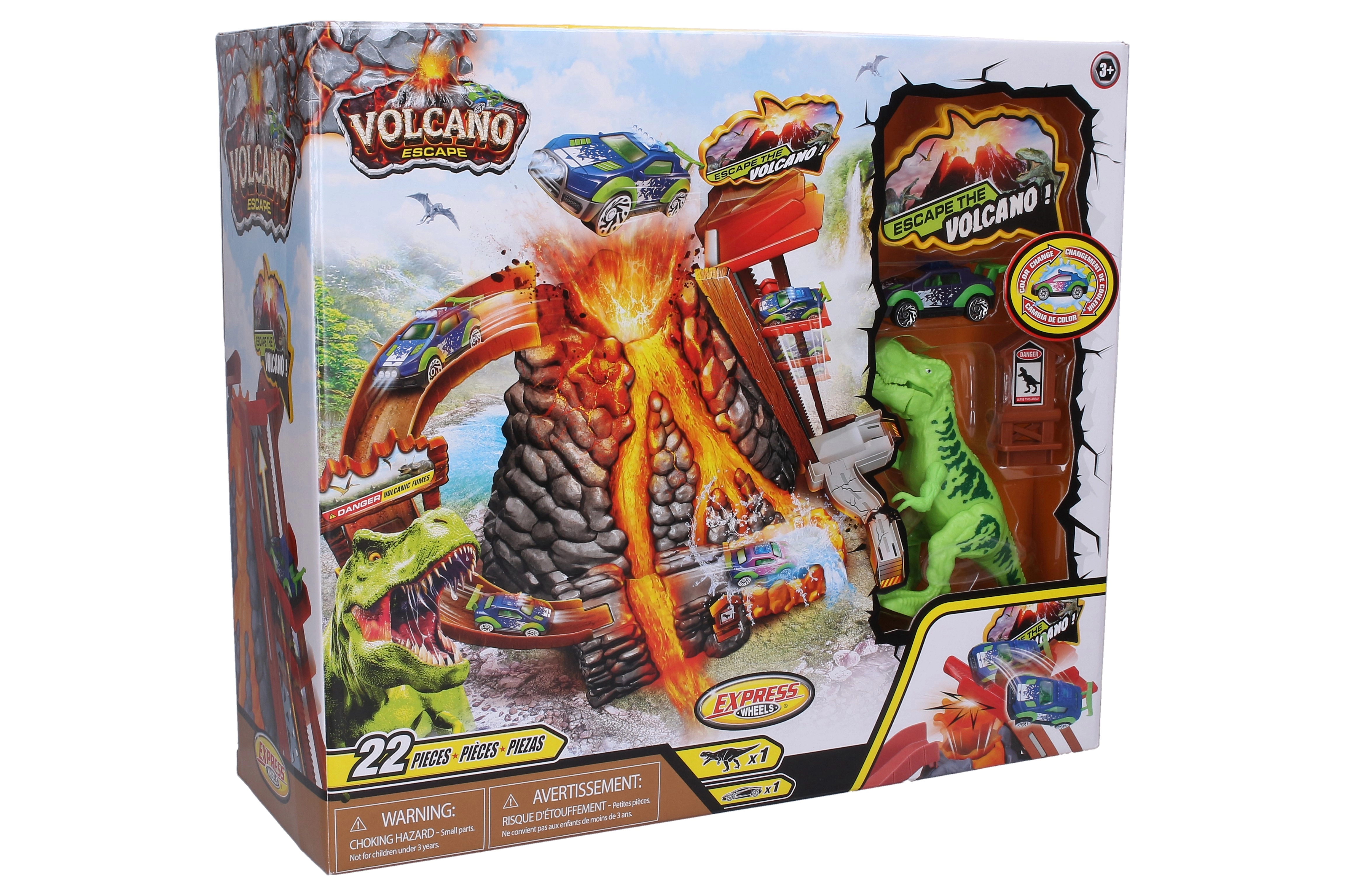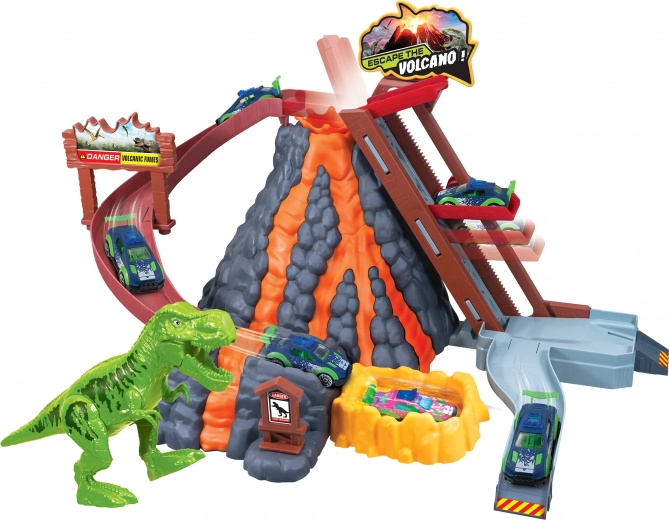 Koge põnevat sõitu autoteerajal koos vulkaani ja autoga, mis muudab värvi vastavalt vee temperatuurile. Komplektis on tõstuk, kraatrisse laskumine, väljatõmmatav laava ja veevann koheseks värvimuutuseks – soe vesi muudab värvi, külm taastab selle.