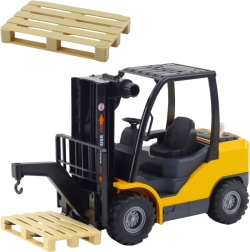 Praktilised liikuvad, kõrguses reguleeritavad kahvlid võimaldavad hõlpsat koormate tõstmist ja langetamist. Komplekti kuulub ka aluspakk, et laps saaks harjutada laadimist ja lossimist nagu päris laos. Mäng arendab peenmotoorikat, liigutuste koordinatsiooni ja kujutlusvõimet.