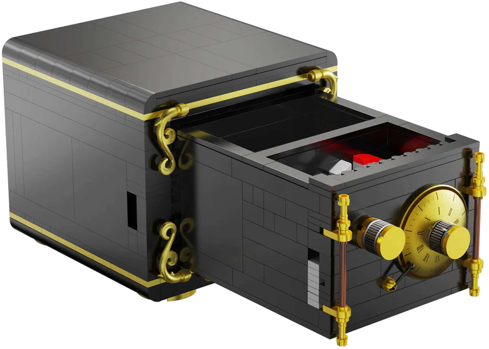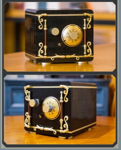 Seif on musta värvi kuldsete aktsentidega, põhijuhtnupul olevad rooma numbrid hõlbustavad koodi seadistamist ning autentne klõpsuv heli keeramisel lisab realistlikkust. Konstruktor arendab silm-käsi koordinatsiooni, loovust ja kannatlikkust, ning tänu detailide ühilduvusele saad seda hõlpsalt täiendada teiste mudelitega.