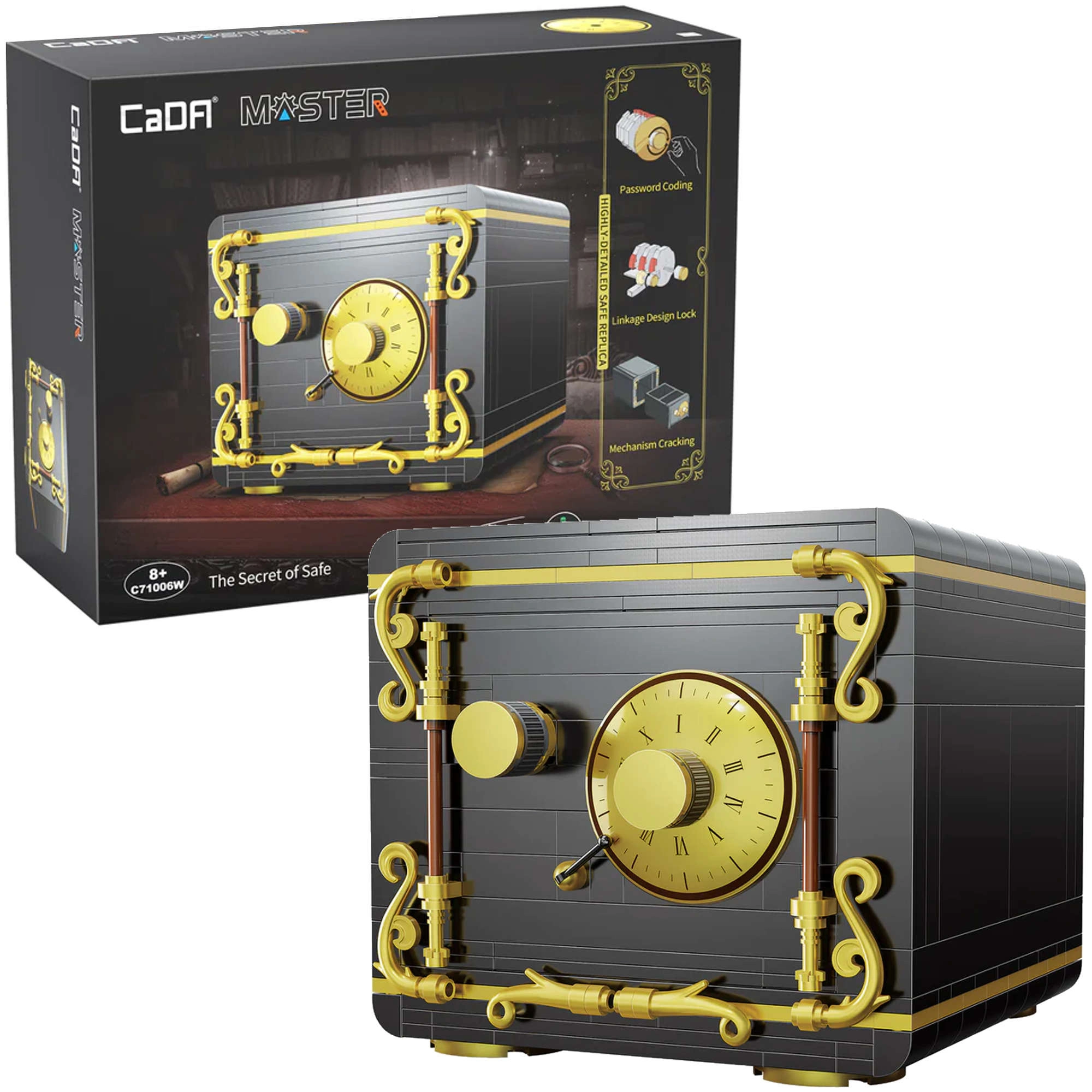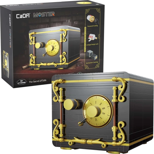 CADA Masteri komplektiga ehitad koju stiilse seifi pööratavate nuppude ja koodilukuga, mis avaldab muljet läbimõeldud detailide ja tugeva konstruktsiooniga. Tänu selgele juhendile saavad mudeli täiskasvanu abiga kokku panna ka nooremad ehitajad.