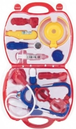 See värvikas arstimängukomplekt pakub rikkalikku valikut arstimänguks – alates stetoskoobist kuni termomeetri ja süstlani. Kõik on hoiustatud vastupidavas, kerges kohvris tugeva sangaga, et lapsed saaksid oma “vastuvõtu” avada igal ajal ja kõikjal. Mäng aitab loomulikult vähendada arsti juurde mineku hirmu ja tutvustab lapsi arstiabivahenditega.
