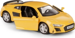 Litsentseeritud AUDI R8 2019 mudel silmapaistvas kollases toonis jäädvustab ustavalt originaali ikoonilised jooned ja proportsioonid. Avatavate uste kaudu näete detailset interjööri. Tagasikeritav veomehhanism tagab kiire edasisõidu pärast kerget tagasi tõmbamist.