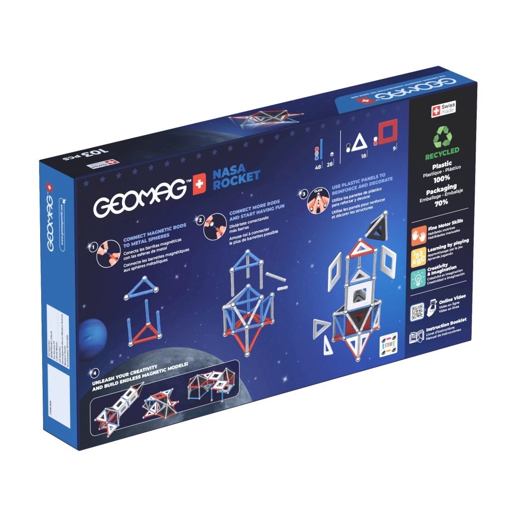 See GEOMAGi limiteeritud magnetehituse väljaanne on loodud koostöös NASAga ning vaimustab nii väikeseid kui suuri kosmosefänne. Tänu tugevatele magnetitele, kergetele raamidele ja metallühendustele saab hõlpsasti ehitada raketi, kuu mooduli ja fantaasiarikkad konstruktsioonid. Vastupidavad detailid ja nutikad ühendused tagavad mudelite stabiilsuse ja sujuva mängu.