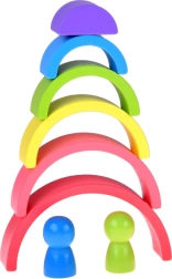 See kirju puidust komplekt pakub avatud mängu, mis on inspireeritud Montessori metoodikast. Lapsed saavad ehitada tornid, sillad, majakesed ja abstraktsed konstruktsioonid, järjestada tükke suuruse ja värvi järgi või neid omavahel ühendada ja kihistada. Mäng arendab loovust, ruumilist mõtlemist ja loogilist mõtlemist.