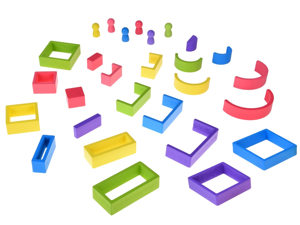 Kaari, raame, sildu ja teisi kujundeid saab laduda, üksteise sisse sobitada ja tasakaalustada. Lapsed harjutavad peenmotoorikat ning õppimine toimub loomulikult läbi mängu.