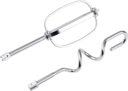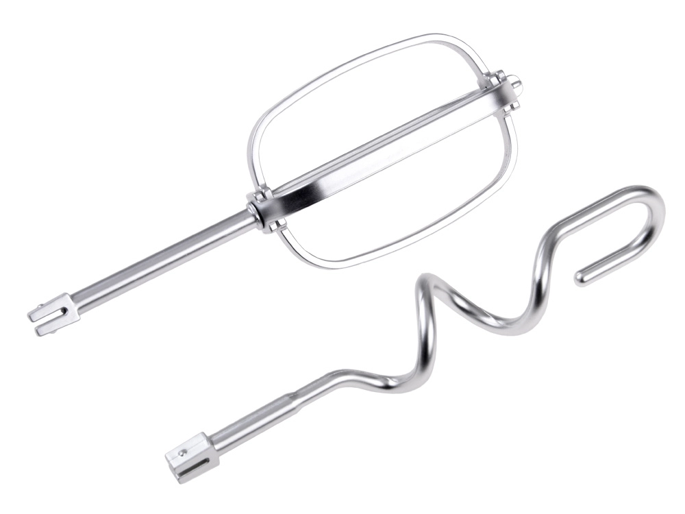 Komplekti kuuluvad vispel ja tainakonks koos praktilise kausiga – ideaalne eri tüüpi mänguretseptide jaoks.
