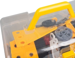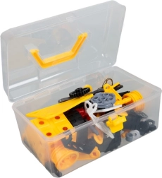 See väikestele inseneridele mõeldud komplekt sisaldab rikkalikku valikut interaktiivseid detaile, sh rattad, hammasrattad, kruvid ja tööriistad, mille abil lapsed ehitavad erinevaid liikuvad sõidukeid ja lihtsaid mehaanilisi mudeleid. Kõik on korrastatult tugevasse hoiukasti käepidemega paigutatud, nii et komplekti on lihtne kaasas kanda ja hoiustada.