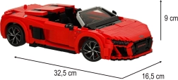 See detailne ehituskomplekt toob sinuni realistliku AUDI R8 Spyder mudeli, millel on läbimõeldud kereliinid, rattad ja kokpit. Tänu suurele detailide arvule loote täpse maketi mõõtudega 32,5 × 16,5 × 9 cm, mis paistab silma nii riiulil kui ka kontoris.