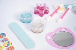 Komplekt arendab kujutlusvõimet ja peenmotoorikat. Lapsed saavad turvaliselt proovida põhilist meiki ja maniküüri värvikas, sõbralikus vormis.