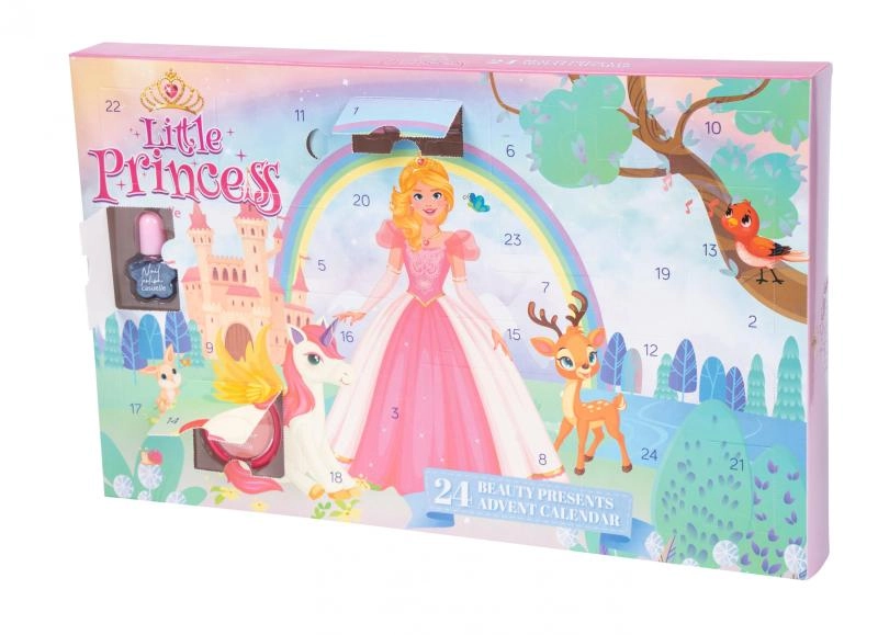See Little Princessi advendikalender kosmeetikaga toob lastele lõbusaid igapäevaseid üllatusi laste meigi ja maniküüri tarvikute näol. Iga 24 akent peidab väikest rõõmu – alates huulepulkadest ja läigetest kuni lauvärvide, põsepuna, küünelakkide, sädeluste, kleepsude ja praktiliste abivahenditeni.