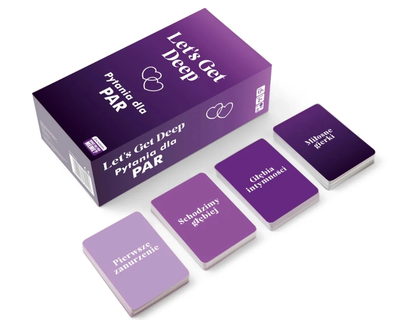 Mäng Let's Get Deep on ideaalne valik paaridele, kes soovivad ühiseid hetki vürtsitada ja teineteist paremini tundma õppida. Kaardid on jaotatud nelja kategooriasse – Esimene sukeldus, Läheme sügavamale, Intiimsuse sügavus ja Armumängud – ning juhatavad teid järk-järgult kergetelt teemadelt intiimsemate küsimusteni.