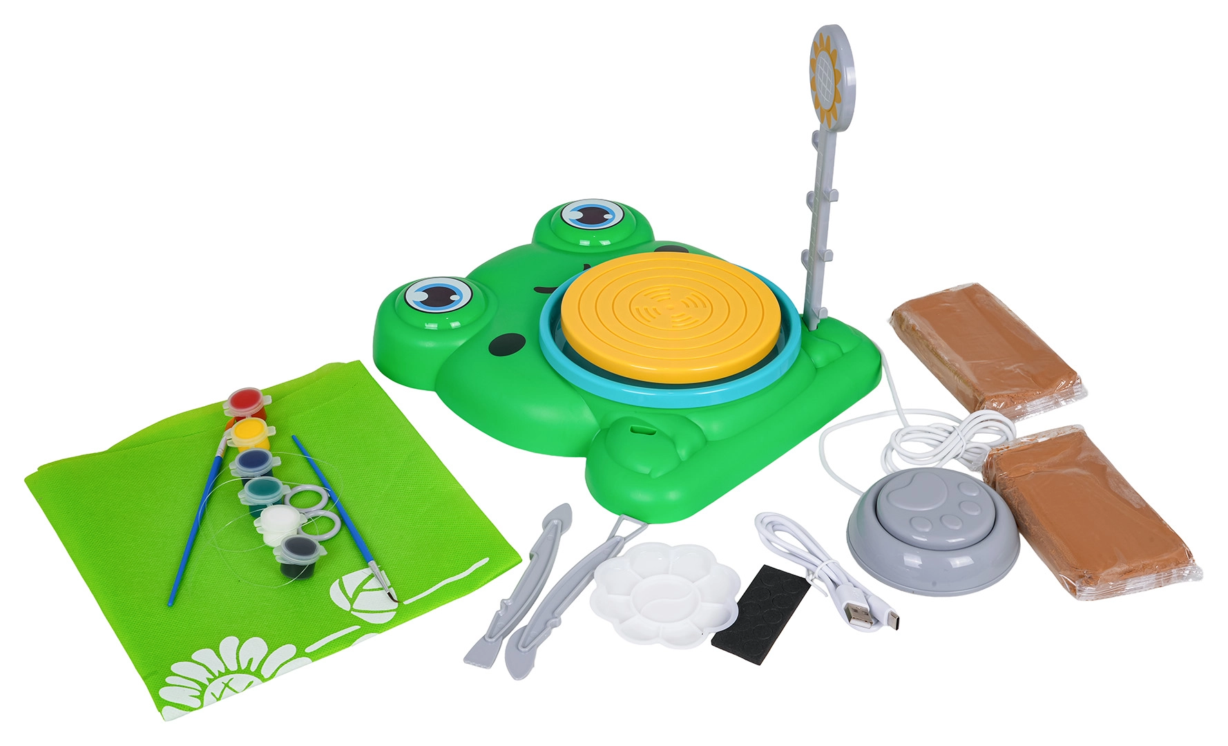 Mänguline konnakujuline potikeder jalapedaaliga pakub lastele turvalise ja lõbusa viisi keraamika põhitõdede proovimiseks. Ketas pöörleb kahel kiirusel (aeglane/kiire), nii et lapsed saavad töötempo hõlpsalt enda järgi seada. Pärast anumate vormimist saab need kaasasolevate värvidega ära värvida ja uhkusega välja panna.