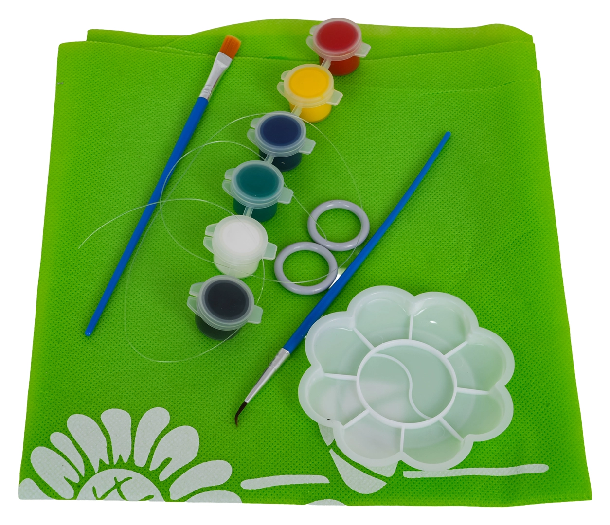 Konnakujuline alus, pöörlev ketas, jalapedaal, väike lamp, tööriistad, värvid ja 2× savi – kõik kohe loomiseks ja värvimiseks.