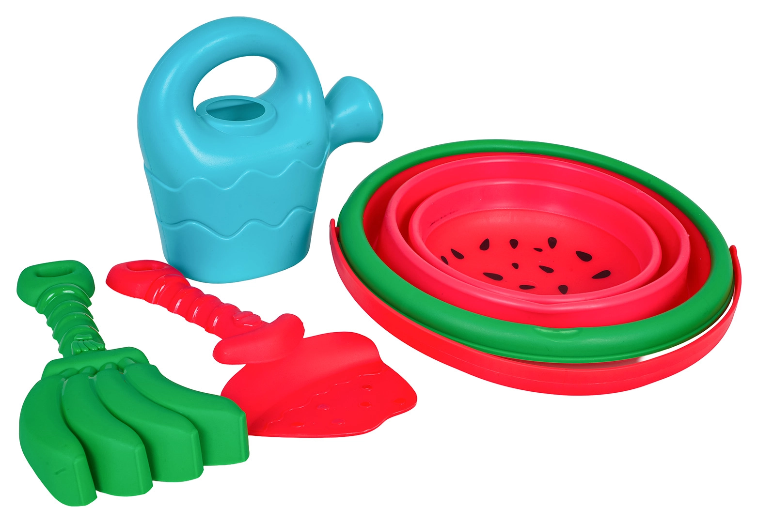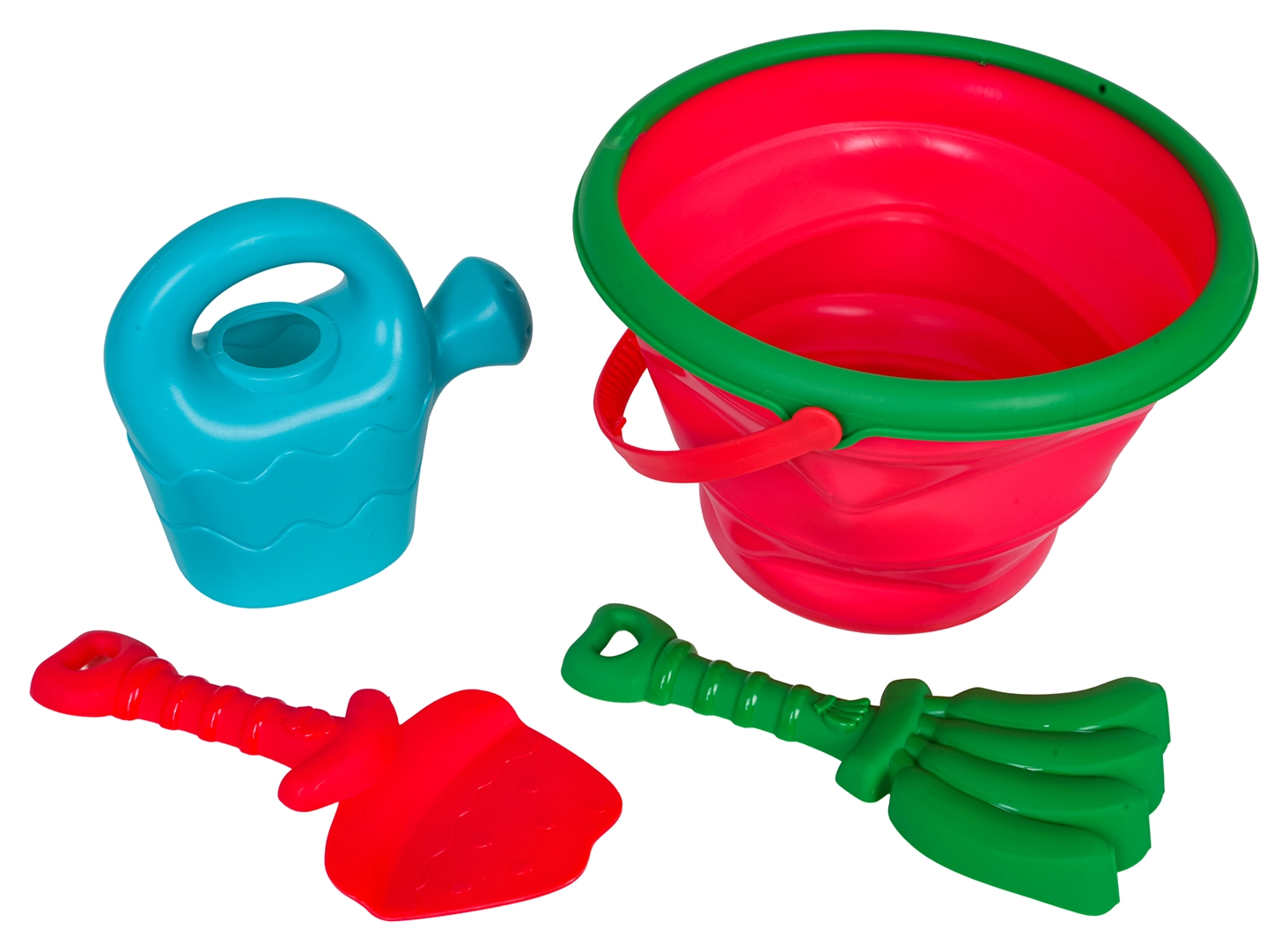 Avastage praktiline liivakomplekt, millega muutub mängimine vee ääres ja liivakastis veelgi lõbusamaks. Kokkupandav ämber vastupidavast plastist ja silikoonist voltub kiiresti kompaktseks, nii et mahub igasse kotti. Labidas, reha ja kastekann on loodud väikestele kätele – kerged, ohutud ja siledate servadega.