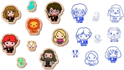 - 9 kujulist puidust templit armastatud HARRY POTTERi motiividega lõputuks loomisrõõmuks.