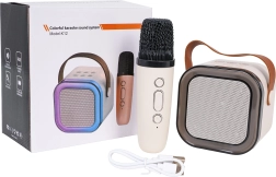 Kompaktne karaokekomplekt lastele alates 3. eluaastast ja täiskasvanutele ühendab juhtmevaba mikrofoni ning võimsa minikõlari, mis pakub selget ja valjut heli, RGB‑taustvalgust ja stabiilset Bluetooth 5.0 ühendust. Tänu DSP müravähendusele, toele MP3/WMA/WAV ning sisenditele, sh TF‑kaart ja USB‑C, sobib see ideaalselt laulmiseks, teadete tegemiseks ja meelelahutuseks teel olles.