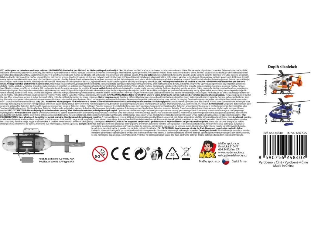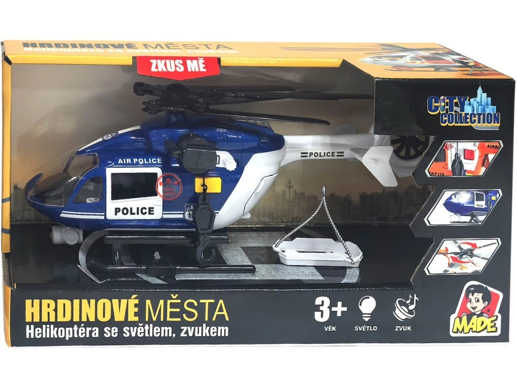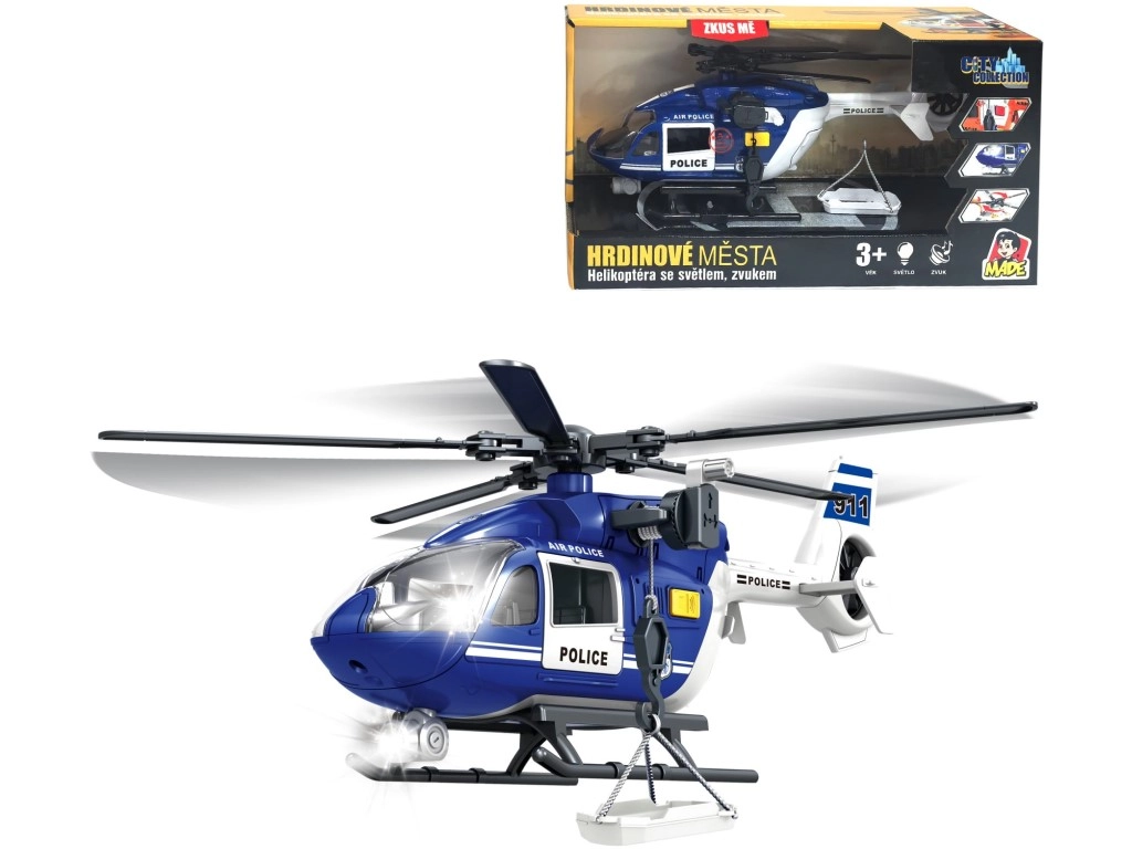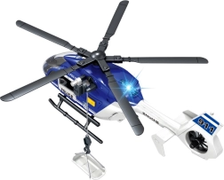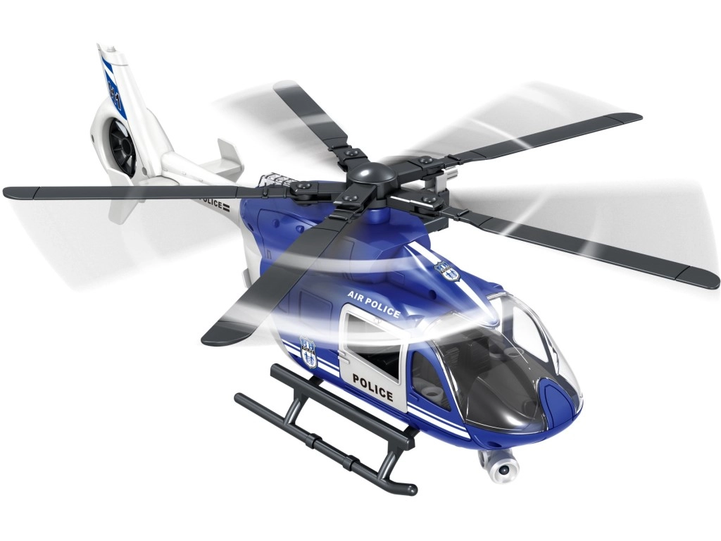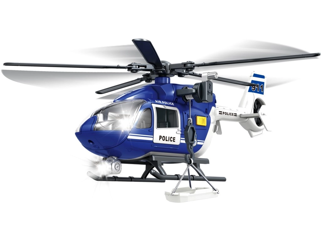 Kokpit läbipaistva katteruuduga, maandumistalveljed ja silmapaistev politseimärgistus. Kvaliteetne plast peab vastu ka intensiivsele laste mängule.