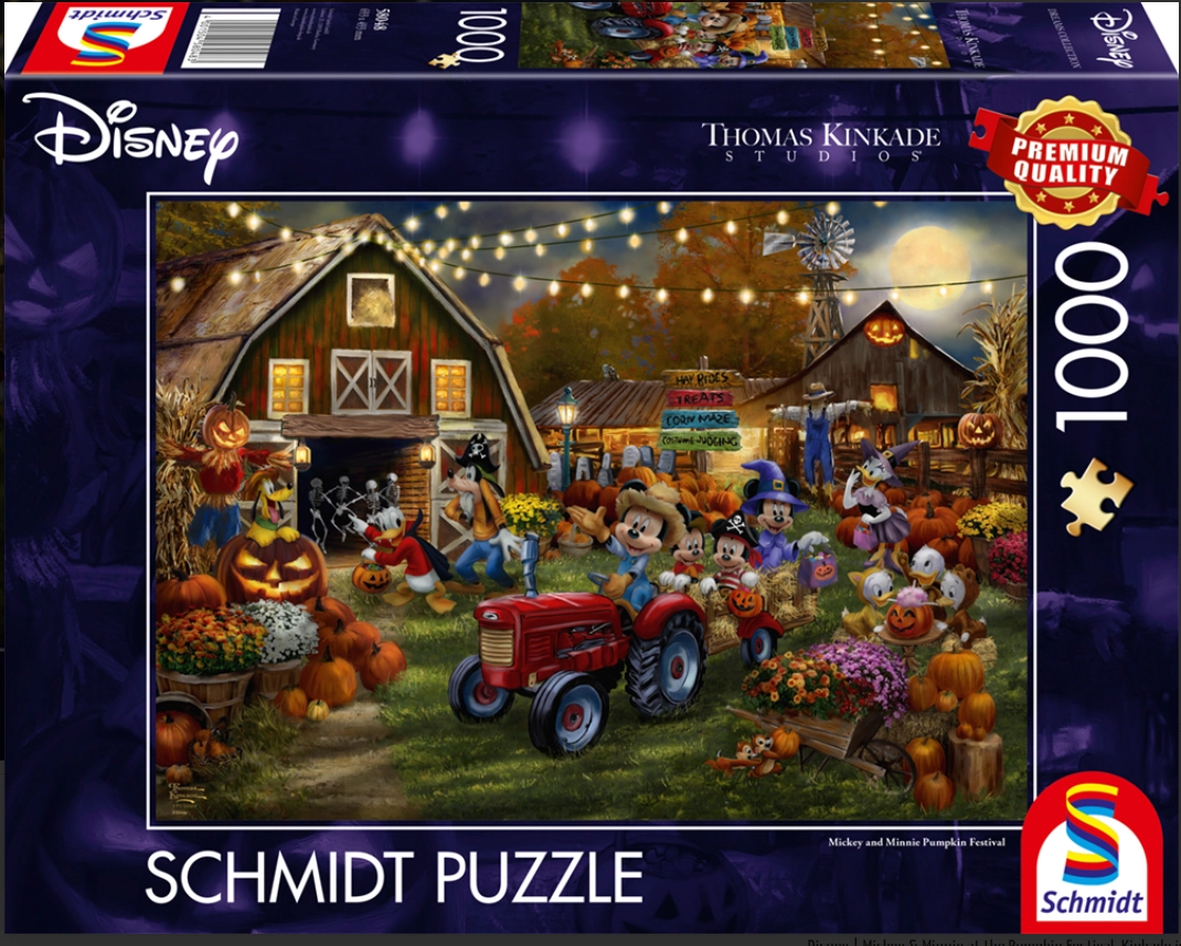 Avasta kokkupaneku rõõm premium-klassi SCHMIDT puslega sügisesel teemal Mickey ja Minnie: Kõrvitsapidu. Tänu täpsele stantsile ja tugevatele tükkidele sobitub iga detail oma kohale ning valminud pilt rõõmustab nii lapsi kui täiskasvanuid. Ideaalne puhkusehetkedeks, kannatlikkuse ja keskendumisvõime arendamiseks.
