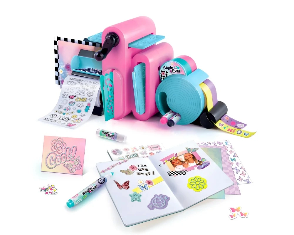 Komplektist leiate dekoreerimisjaama, märkmiku, erivärvilised ja mustrilised paberid, metallikfooliumid, dekoratiivteibid, kleebised, šabloonid embosseerimiseks ja ülekandeks, markerid, liimi ja palju muud. Tänu sellele loovad lapsed hõlpsasti kaarte, kollaaže, õnnesoove, scrapbook’i lehekülgi ja personaliseeritud aksessuaare.