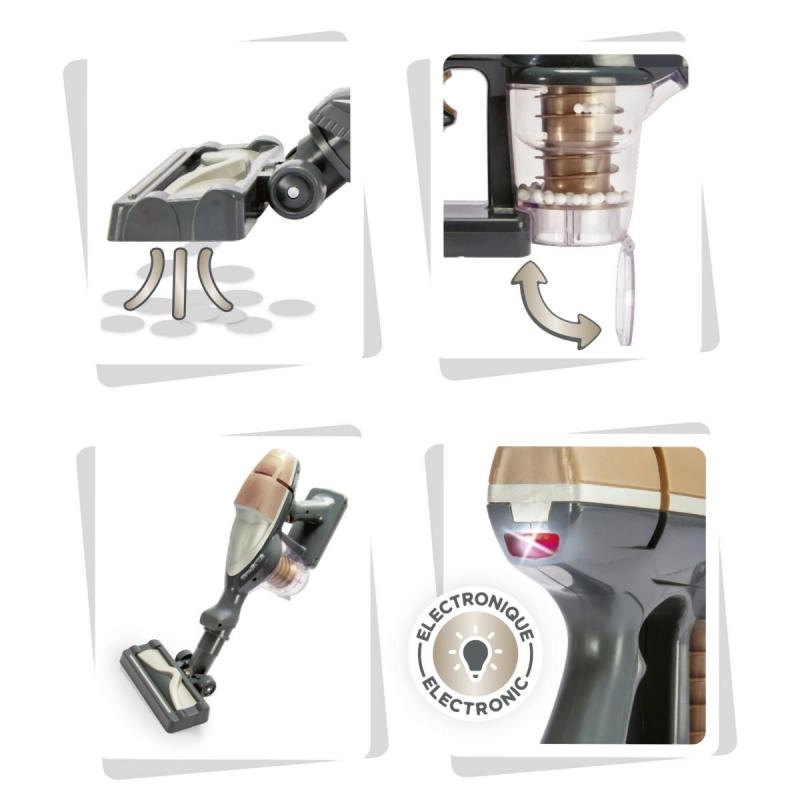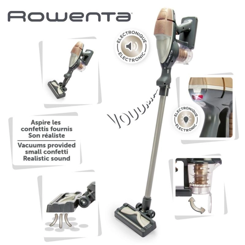 Stiilne lastemängu varstolmuimeja, mis on inspireeritud mudelist ROWENTA Air Force 360, pakub lastele realistlikku koristamiskogemust. Nupule vajutades süttib LED-tuli, kostab päris imemisheli ning aktiveerub õrn imemine. Läbipaistev anum keerlevate kuulidega on avatav ja tühjendatav nagu päris seadmel. Võimalus kasutada ka käsitolmuimejana toetab loovat mängu.