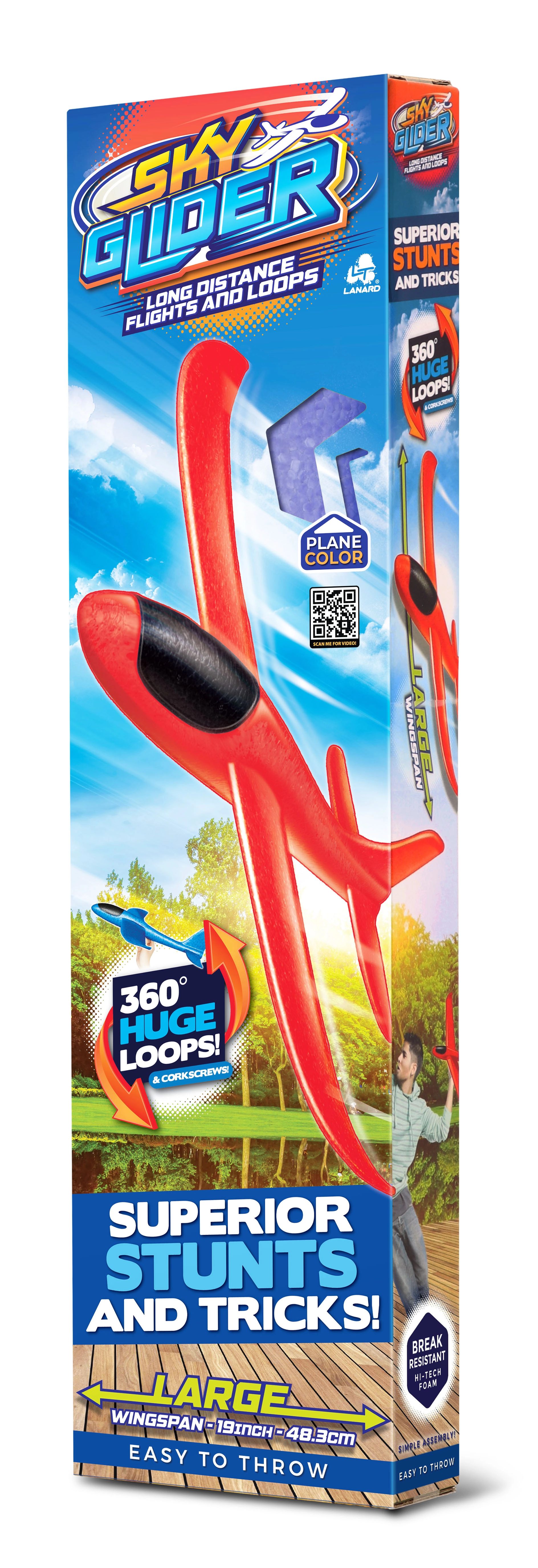 Kerge ja vastupidav Sky Glider on ideaalne viskamislennuk nii lastele kui ka täiskasvanutele. Tänu 48 cm tiivaulatusele pakub see stabiilset lendu, kuni 30 meetri lennukaugust ning võimalust reguleerida sabapindu sirglennuks või silmuseks. Saadaval kahes värvivariandis.