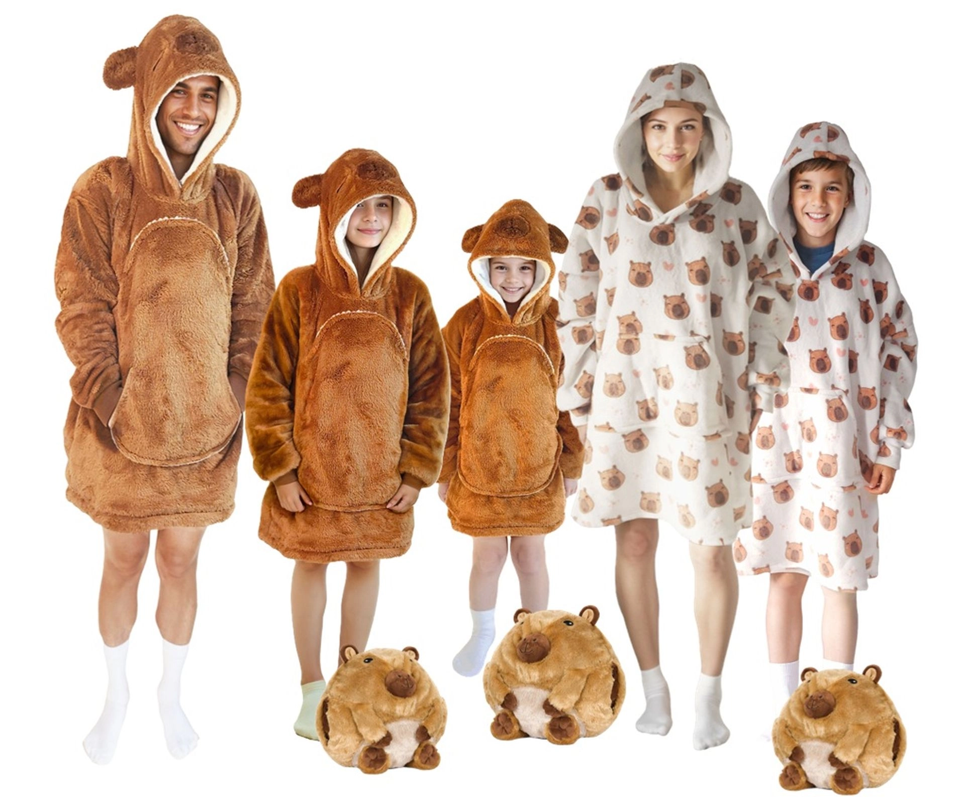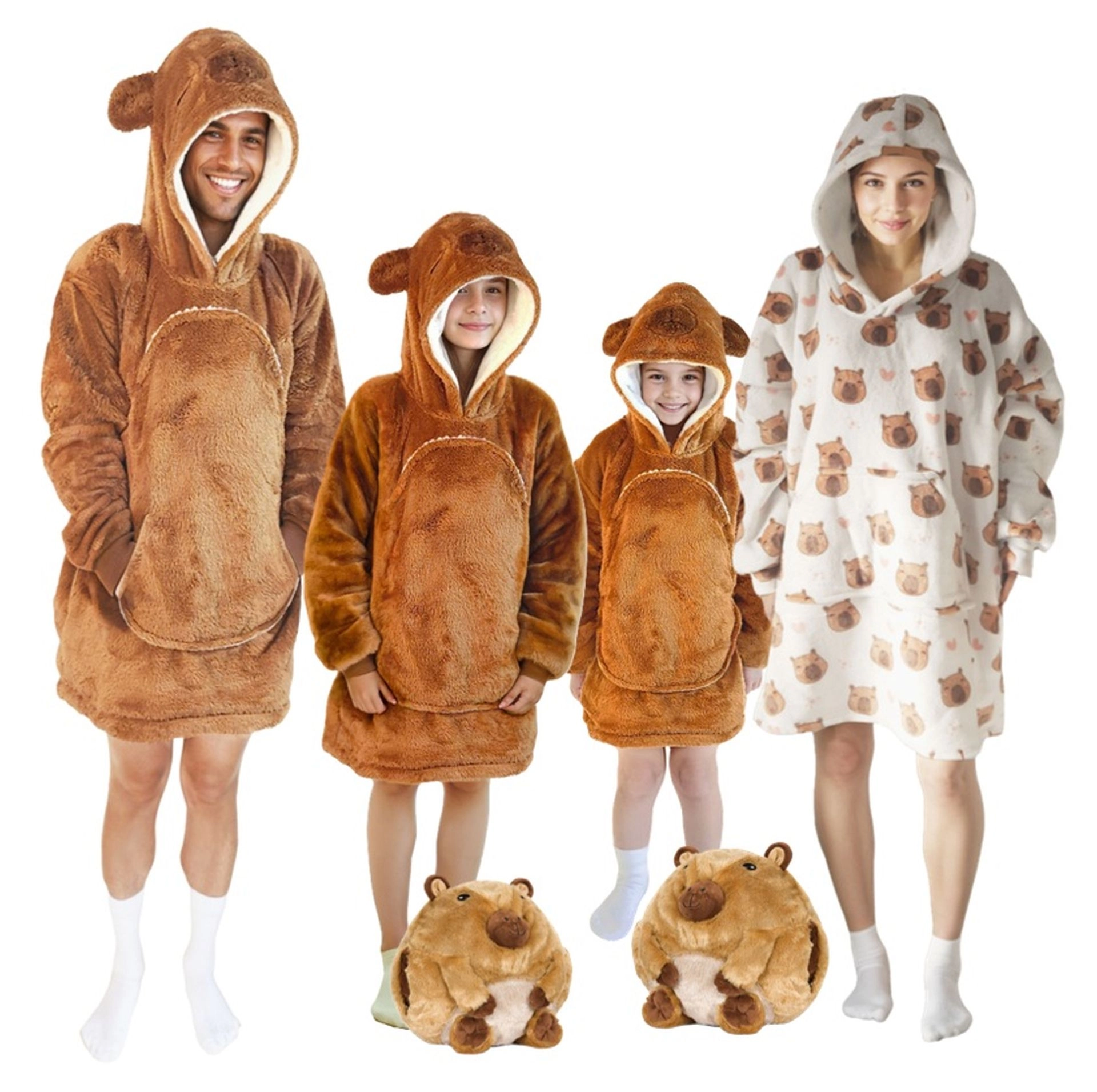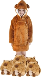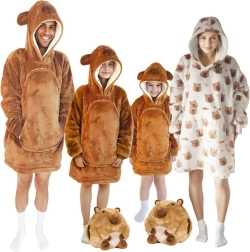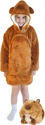 See laste kapuutsiga pusa-tekk kapibaara disainiga on nagu kallistus, mis soojendab pealaest jalatallani. Sisemine sherpa-fliisi kiht on kohev ja soe, samal ajal kui välimine pehme flanellpind on õrn puudutusele. Tänu ülegabariidilisele lõikele tunnevad lapsed end mugavalt nii telerit vaadates, mängides kui ka puhates.
