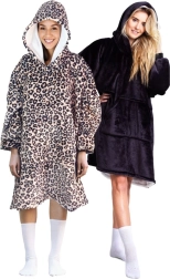 Mässi end ülimasse mugavusse – see ülemõõdus kapuutsiga mikrotekk ühendab väljast pehme flanelli ja seest sooja sherpa-fliisi. Hiigelsuur esitasku, vaba lõige ja põlvedeni ulatuv pikkus teevad sellest ideaalse kaaslase koju lesimiseks, arvutitööks ning õues istumiseks. Stiilne leopardimuster lisab su puhkusele sära.